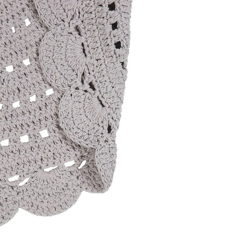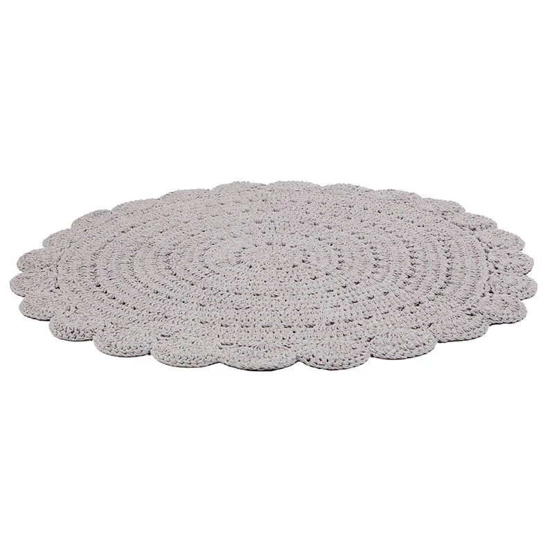 Preciosa Alfombra infantil de algodón 100% lavable en lavadora confeccionada con punto crochet, efecto ganchillo.