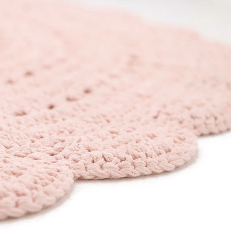 Preciosa Alfombra infantil de algodón 100% lavable en lavadora confeccionada con punto crochet, efecto ganchillo.