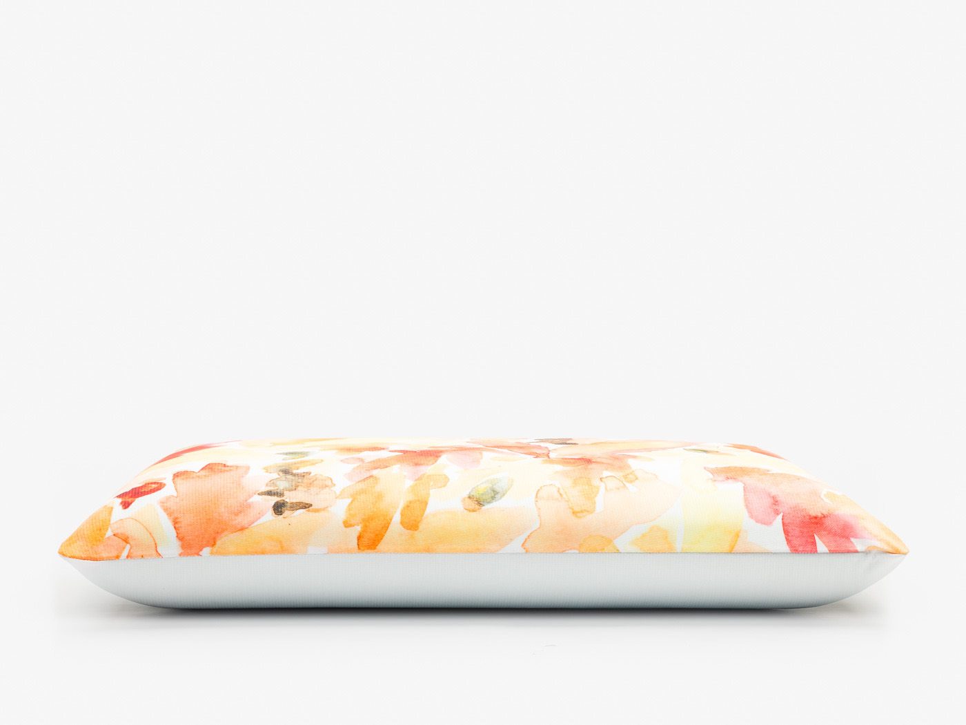 La almohada Brezzz Magosto es reversible, ofreciéndote decoración y descanso al mismo tiempo. Podrás descansar apaciblemente en su cara blanca y usarla como cojín de decoración en su lado en tonos ocre, con hojas de otoño. Como el resto de las almohadas Brezzz es 100% desenfundables y se puede lavar sin problemas a mano o a máquina a 30 grados.