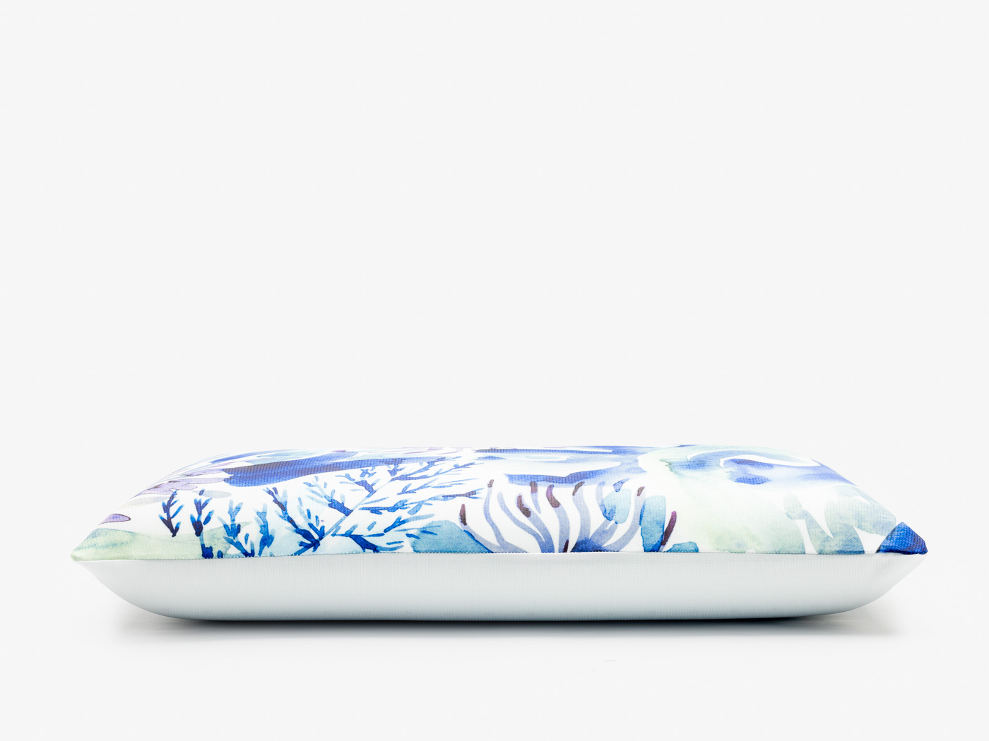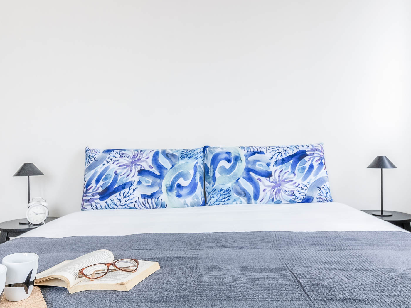 La funda exterior, en tonos azules, transforma tu dormitorio en un remanso de tranquilidad inspirado en el océano Atlántico y sus colores, llevándote a conectar con el ciclo natural de la vida en el mar y su belleza.