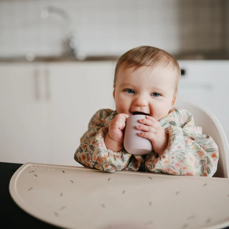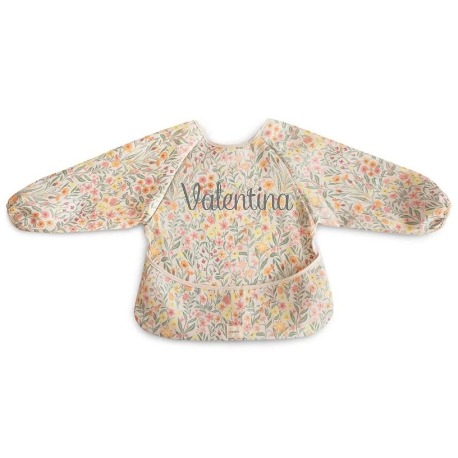 Babero de manga larga Mushie de material resistente al agua. Antimanchas.