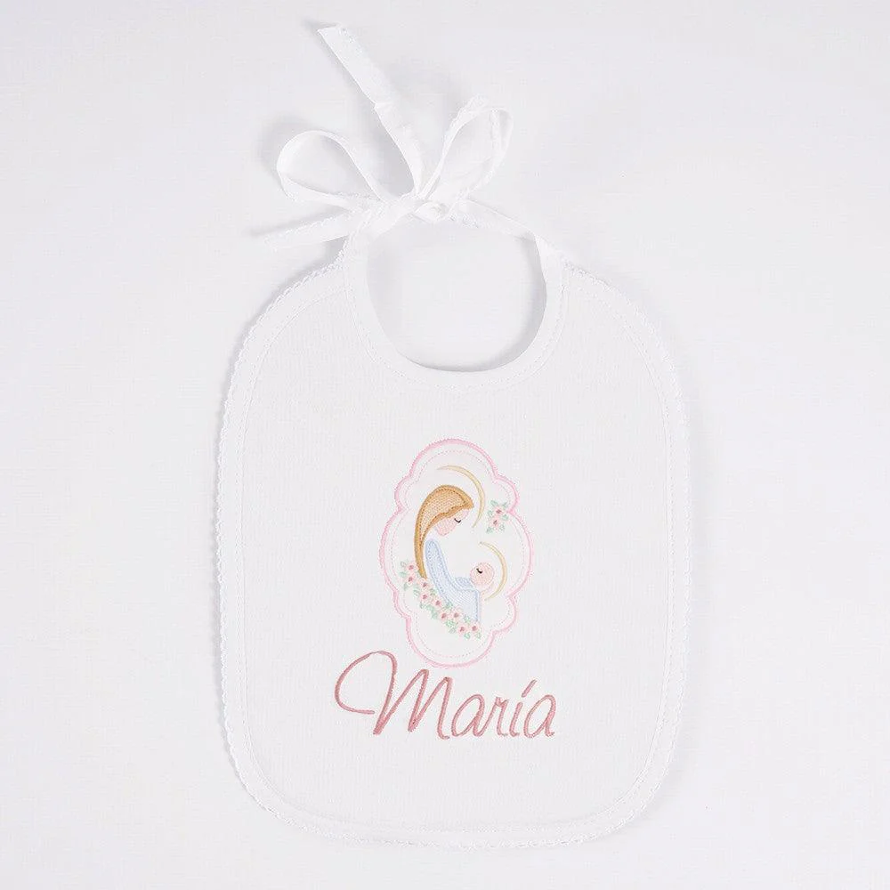 Babero Personalizado Bebé Bordado Virgen María Nanetes