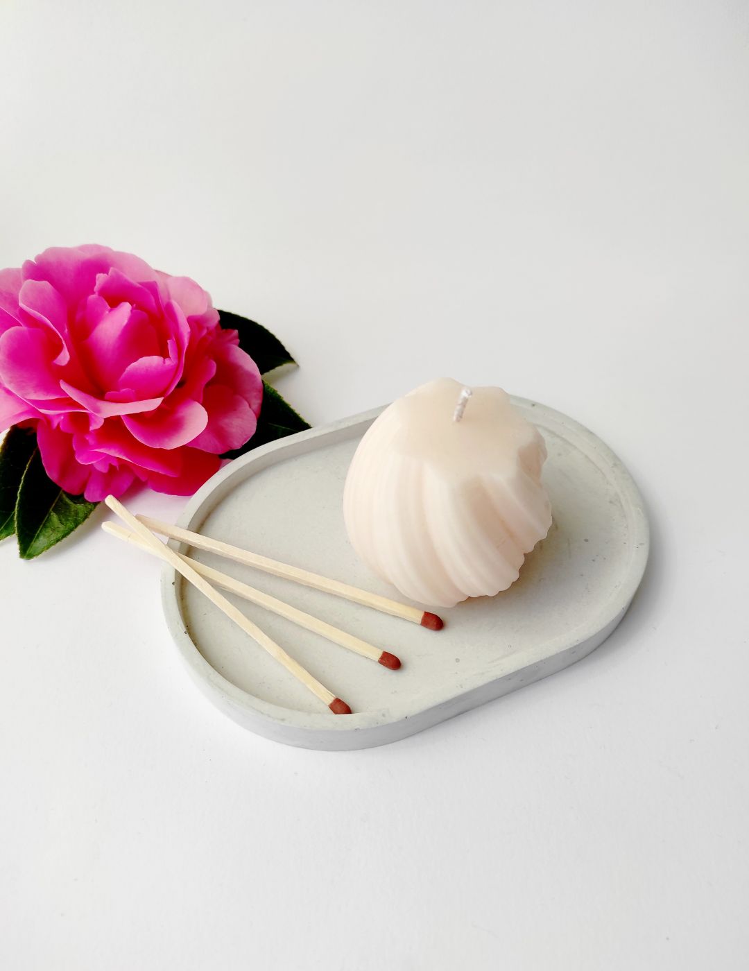 «description»: «Bandeja de cemento artesanal en color gris, elaborada a mano con un diseño minimalista y versátil. Ideal para colocar tus velas, cerillas u otros pequeños objetos decorativos. Aporta un toque de calma y estilo a cualquier rincón.»,