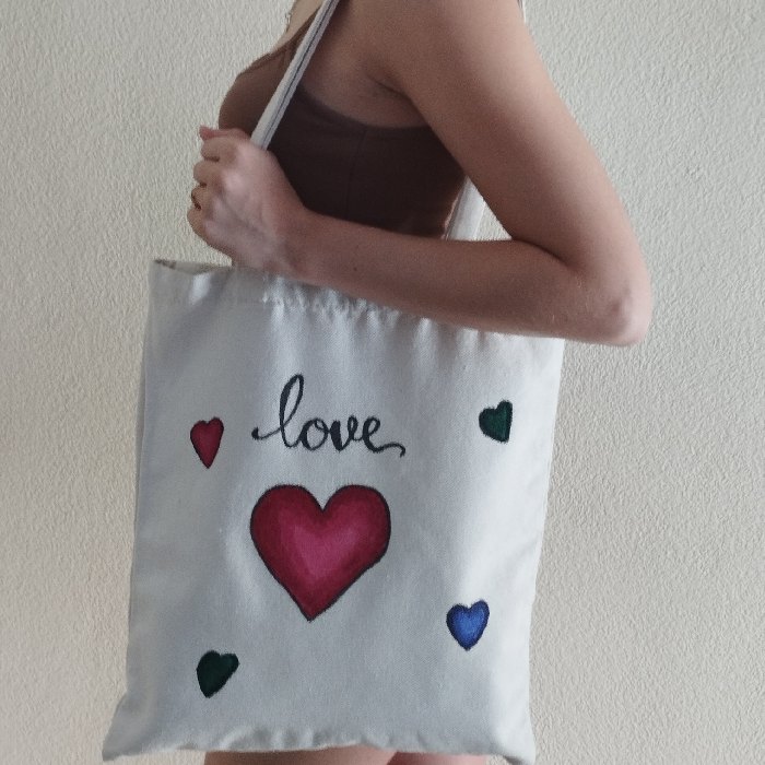 Bolsa de tela pintada a mano CORAZONES