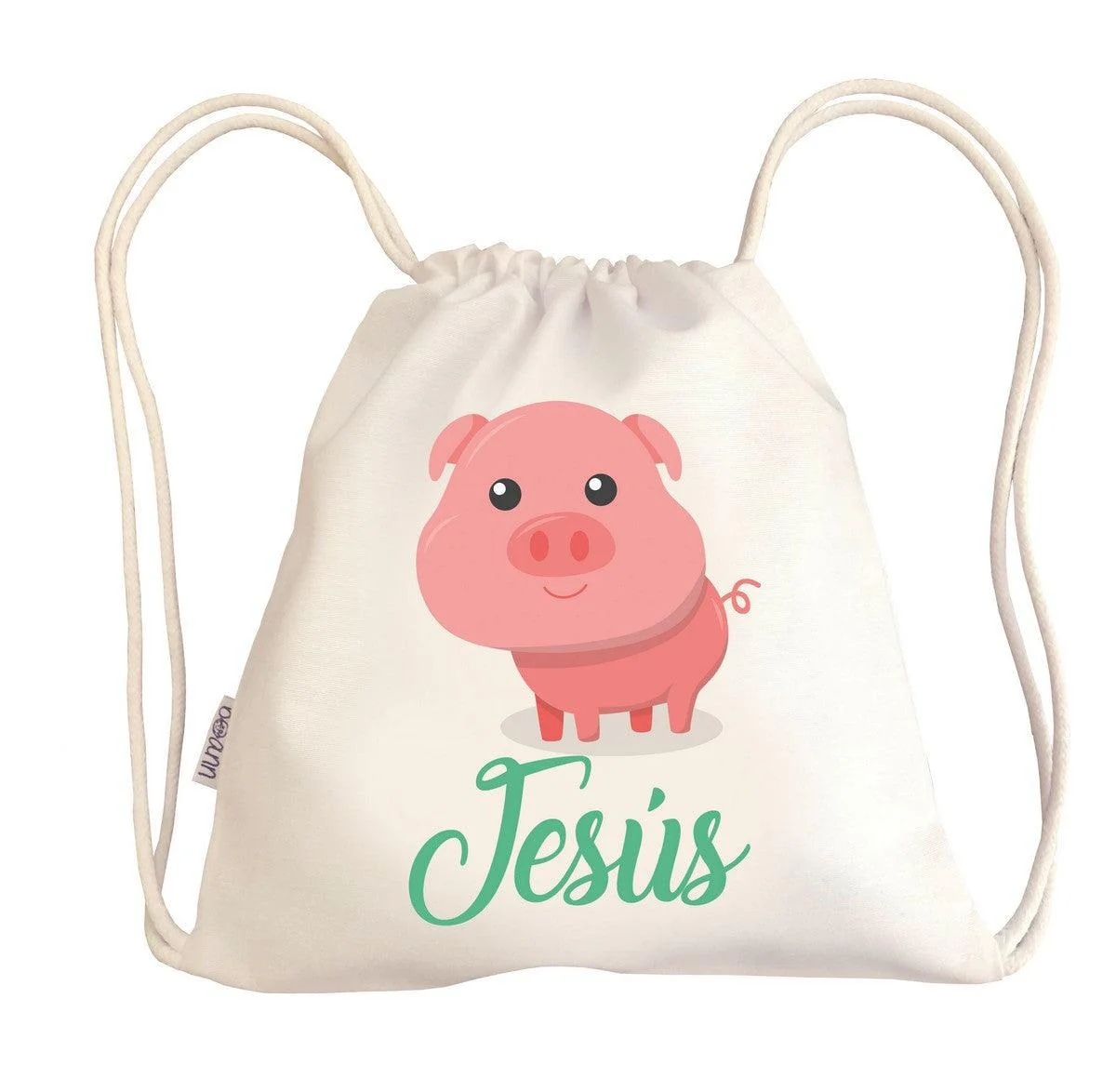 Bolsa Tela Niños Petate Personalizado Cerdito con Nombre Boann