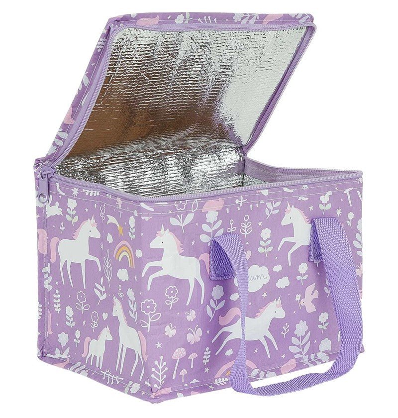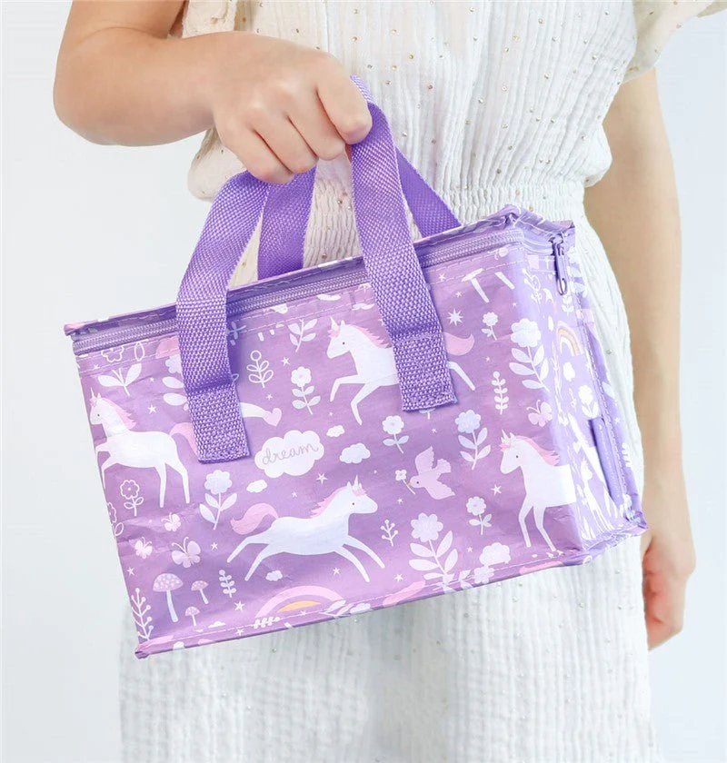 Esta bolsa térmica porta alimentos de unicornios combina funcionalidad y estilo para los más pequeños. Mantiene sus comidas frescas con un diseño encantador que aporta un toque de sofisticación y magia a la hora del almuerzo.