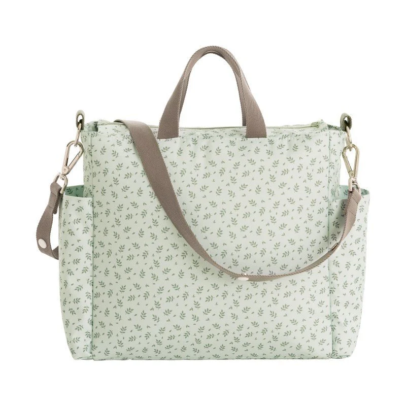 Se puede llevar colgado al hombro o colgar del carrito del bebé. Con bolsillos interiores y exteriores para facilitar el orden.