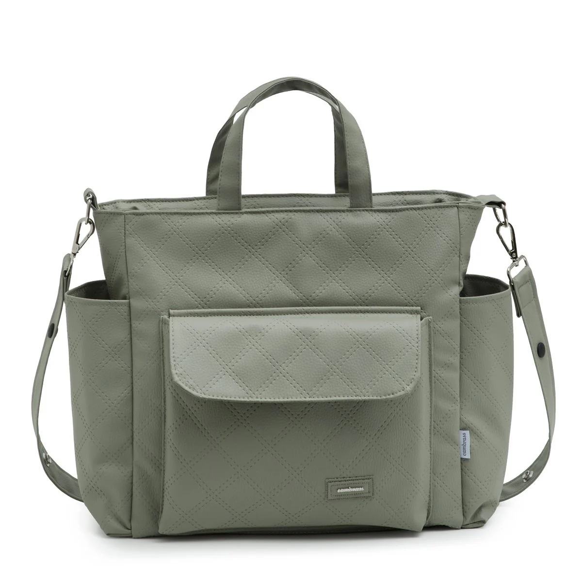 Bolso para Maternidad de Cambrass con un sistema de asas largas y otra extralarga para colgar al hombro o del carro del bebé con sus corchetes. Resulta muy útil tanto como bolso de mano o maletín así como colgado al hombro tipo bandolera o incluso para llevar colgado del carro del bebé.