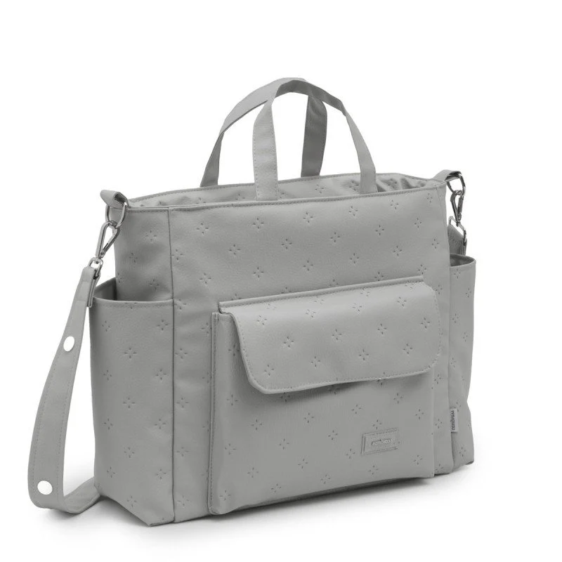 Bolso para Maternidad de Cambrass con un sistema de asas largas y otra extralarga para colgar al hombro o del carro del bebé con sus corchetes. Resulta muy útil tanto como bolso de mano o maletín así como colgado al hombro tipo bandolera o incluso para llevar colgado del carro del bebé.