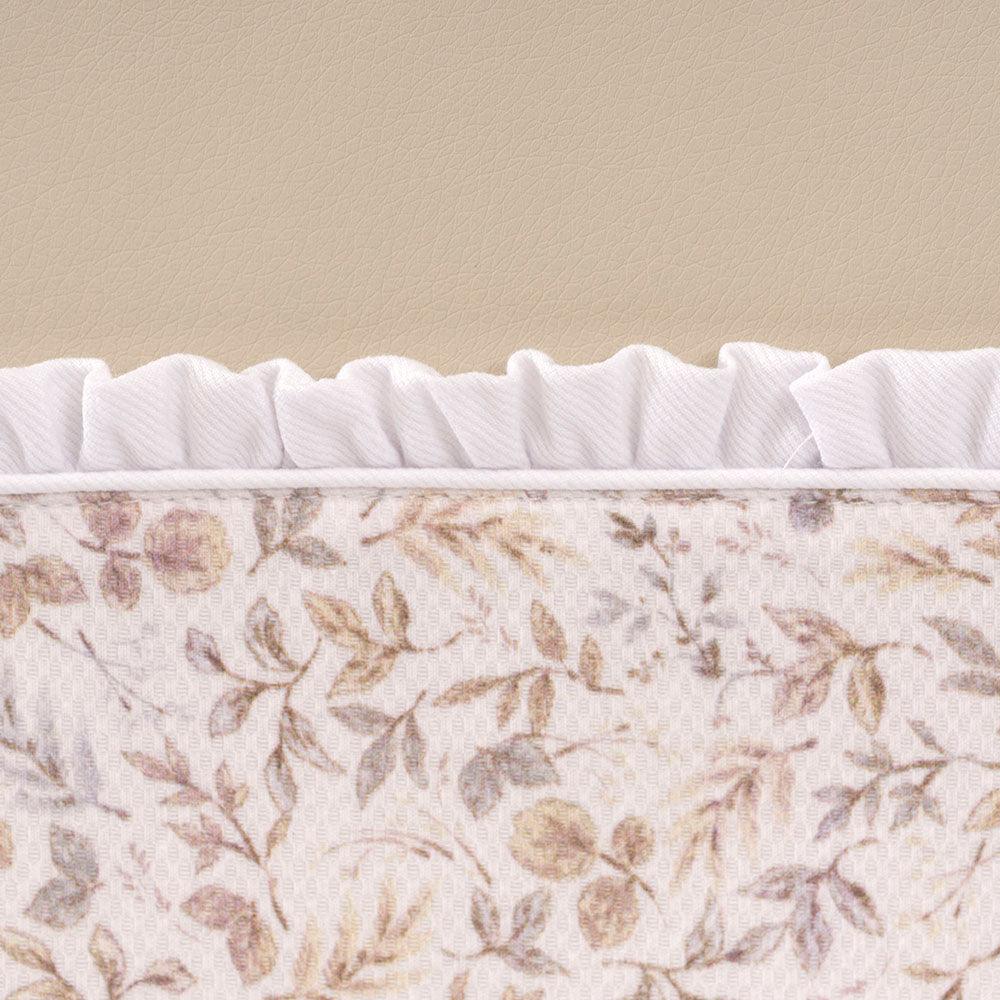 Bolso panera gemelar con tela de polipiel camel y bolsillo delantero estampado flores.