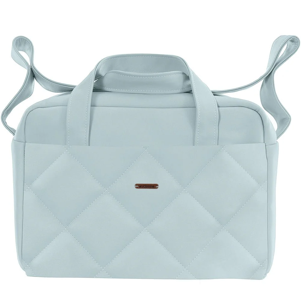 Se puede llevar colgado al hombro o colgar del carrito del bebé. Con bolsillos interiores y exteriores para facilitar el orden.