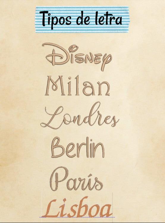 Se puede pedir personalizada con el nombre bordado . Si eliges esa opción es muy importante comprobar bien que el nombre escrito sea correcto, sin errores de escritura ni ortografía, porque una vez pasado el pedido a fabricación ya no podemos hacer cambios.