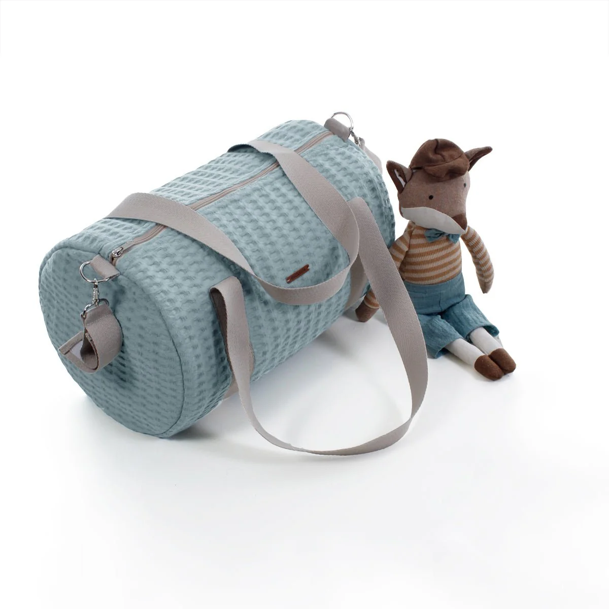 Cierre con cremallera. Lleva asas largas para poderlo colgar al hombro y corchetes para poder colgarlo en el carrito del bebé..