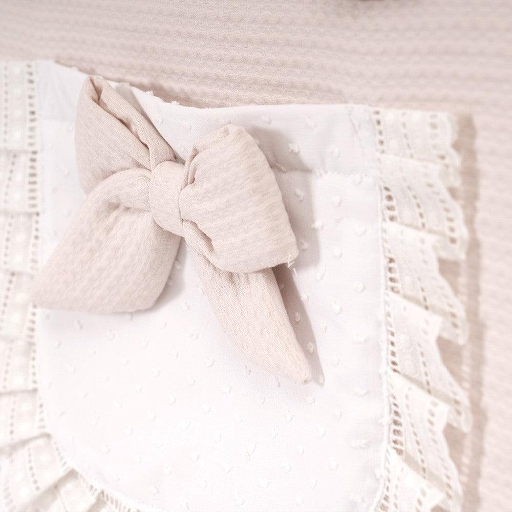 Bolso talega clásico elegante de tela artesanal con tela de piqué color rosa empolvado pálido. Modelo Bolso Panera Lencero artesanal de alta calidad hecho en España.