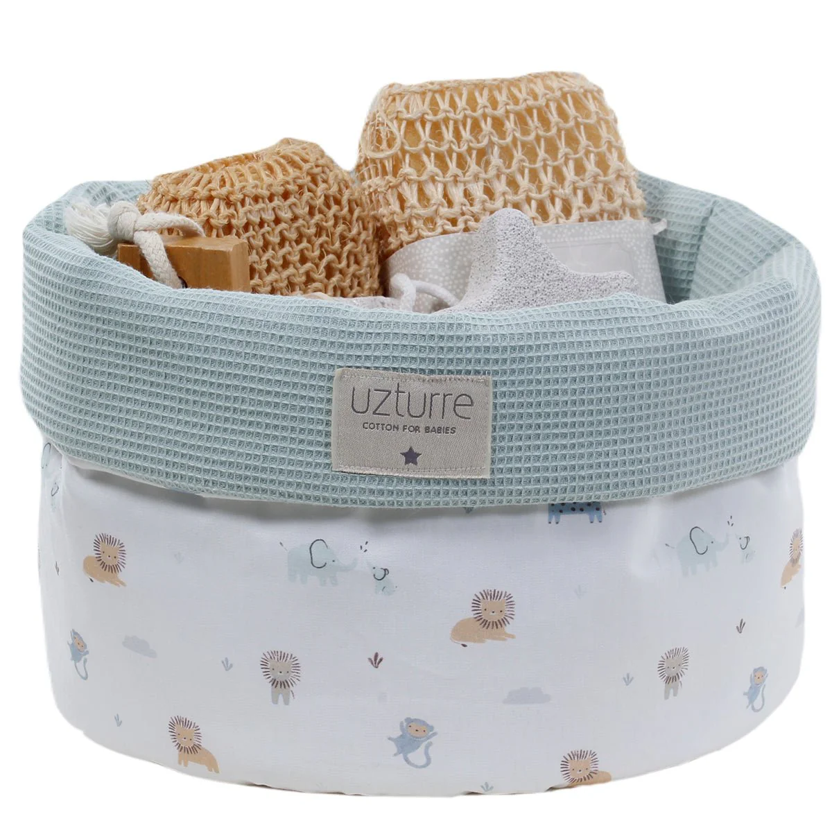 ¡Mantén todos los productos de higiene de tu bebé organizados y a mano con la cesta de aseo Safari Uzturre! Perfecta para la maternidad, esta cesta es la solución ideal para mantener tu baño ordenado. Ya no tendrás que buscar en diferentes lugares, ¡todo lo que necesitas está en un solo lugar!