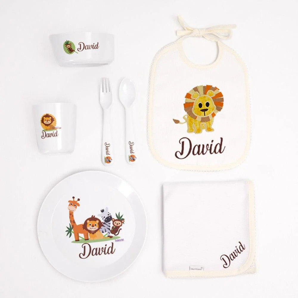 Cesta Regalo Alimentación Bebé Vajilla Leon Selva Nanetes