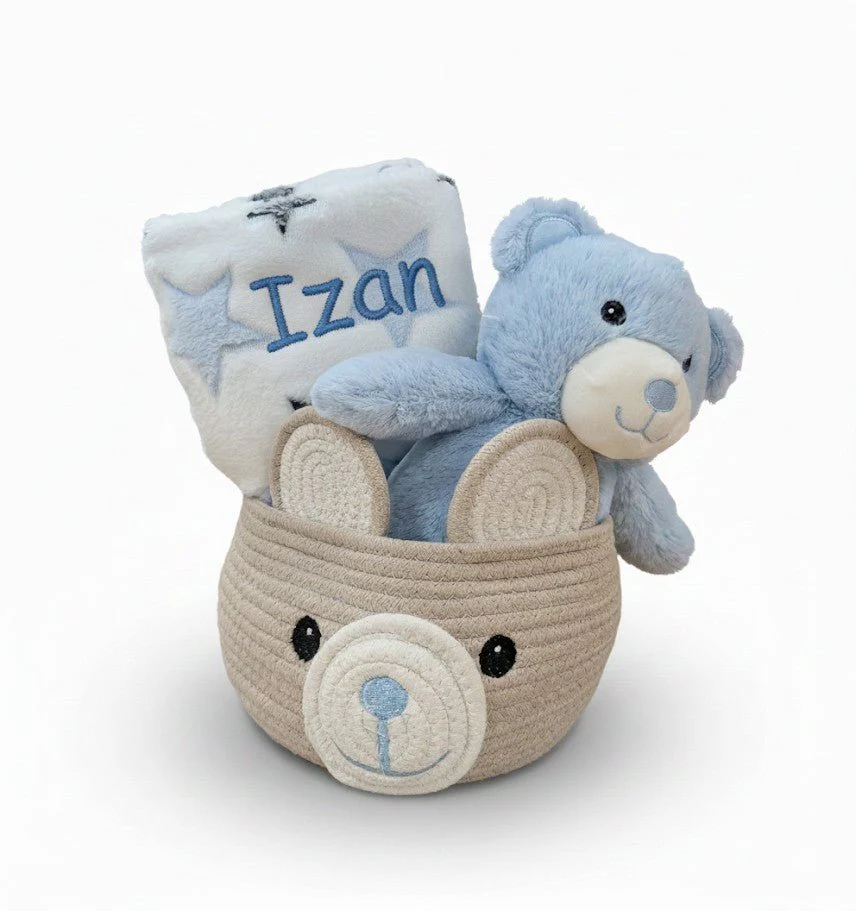 Cesta+Manta+Osito azul Personalizado Nanetes