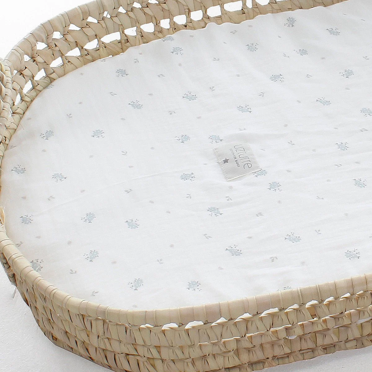 Cesto de palma con colchón impermeable y bajera ajustable incluida. Para colocar encima de cualquier cómoda.