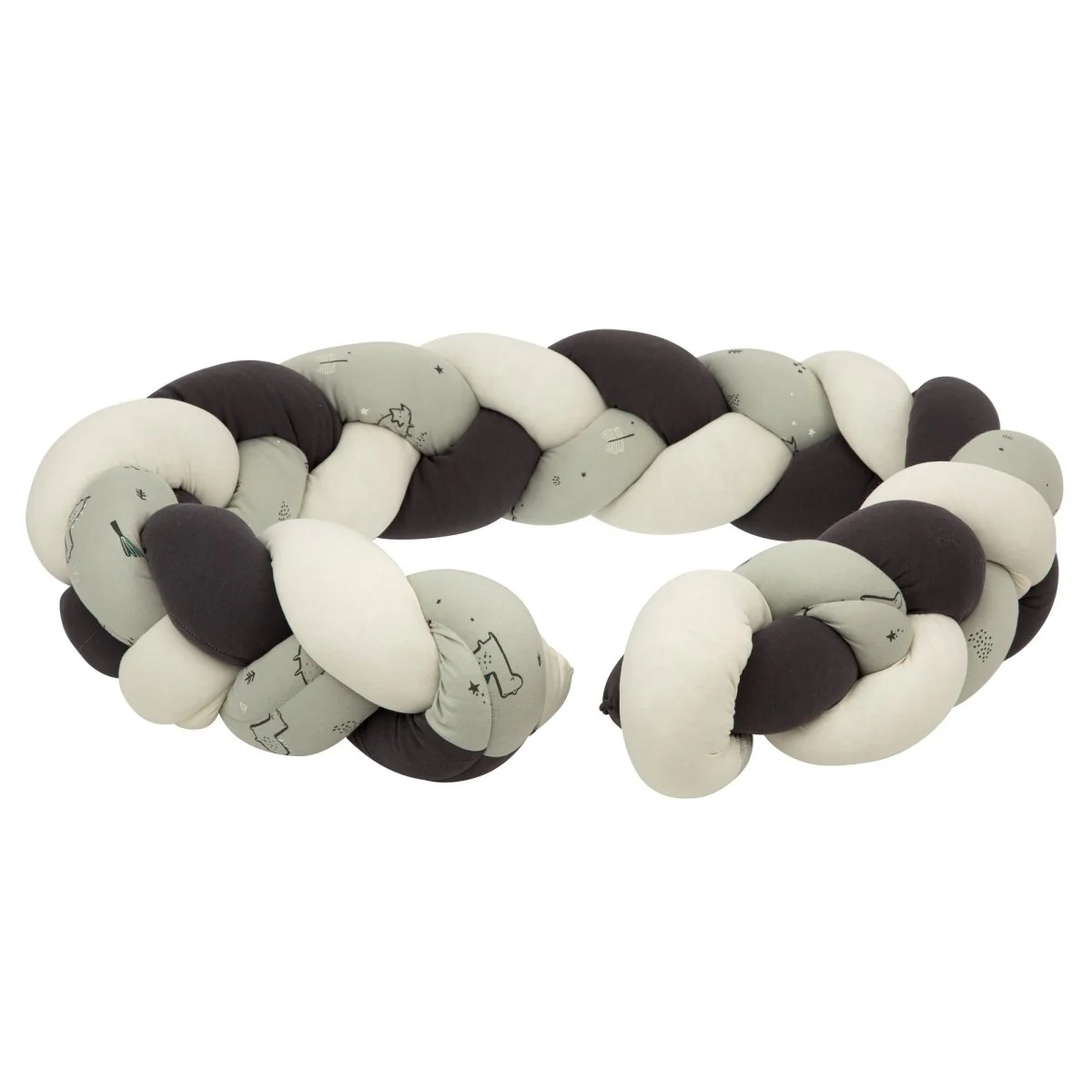 50% bambú viscosa/ 50% algodón orgánico- relleno:eco 100% poliéster reciclado. Se puede lavar en lavadora, máximo 30º. No usar secadora.