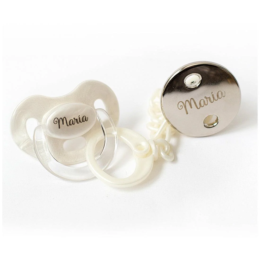 Chupete con Broche Premium Personalizados Perlado/Plata Boann