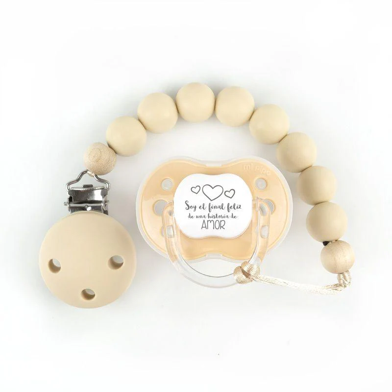 Chupetero cadenita silicona personalizado con el nombre, original, y confeccionado con materiales de fabricación alemana, de primera calidad, NO toxicos para el bebé. A pesar de eso es muy importante recordar que el chupetero no es un juguete ni un mordedor, no hay que dejar que el bebé lo chupe o lo muerda.