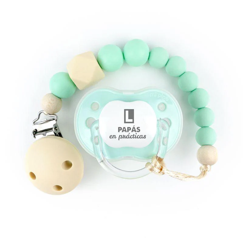 Chupetero cadenita silicona personalizado con el nombre, original, y confeccionado con materiales de fabricación alemana, de primera calidad, NO toxicos para el bebé. A pesar de eso es muy importante recordar que el chupetero no es un juguete ni un mordedor, no hay que dejar que el bebé lo chupe o lo muerda.