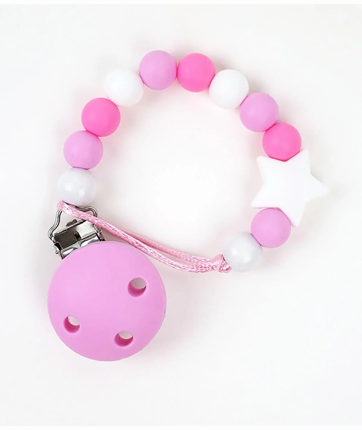 Chupetero Cadenita Silicona Mi Pipo Estrella Rosa