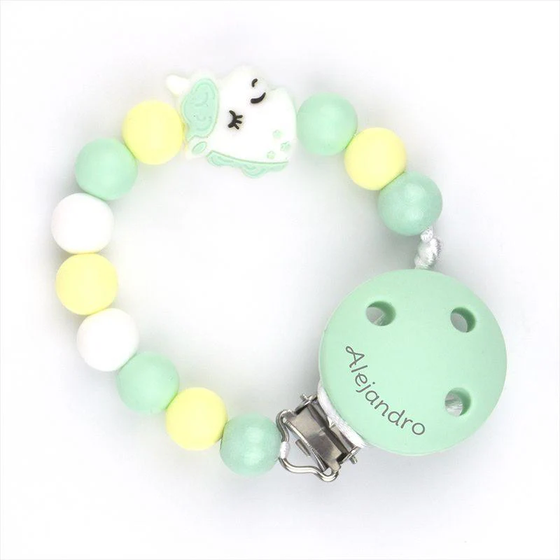 Chupetero Silicona Personalizado en el Clip Mi Pipo Unicornio Menta