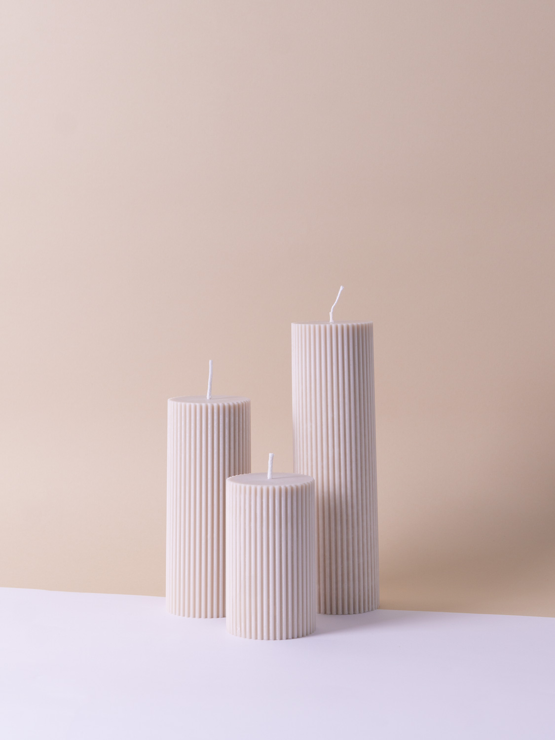 Conjunto de tres velas decorativas en forma de cirios elaborados con Cera de Soja | Dos colores disponibles.