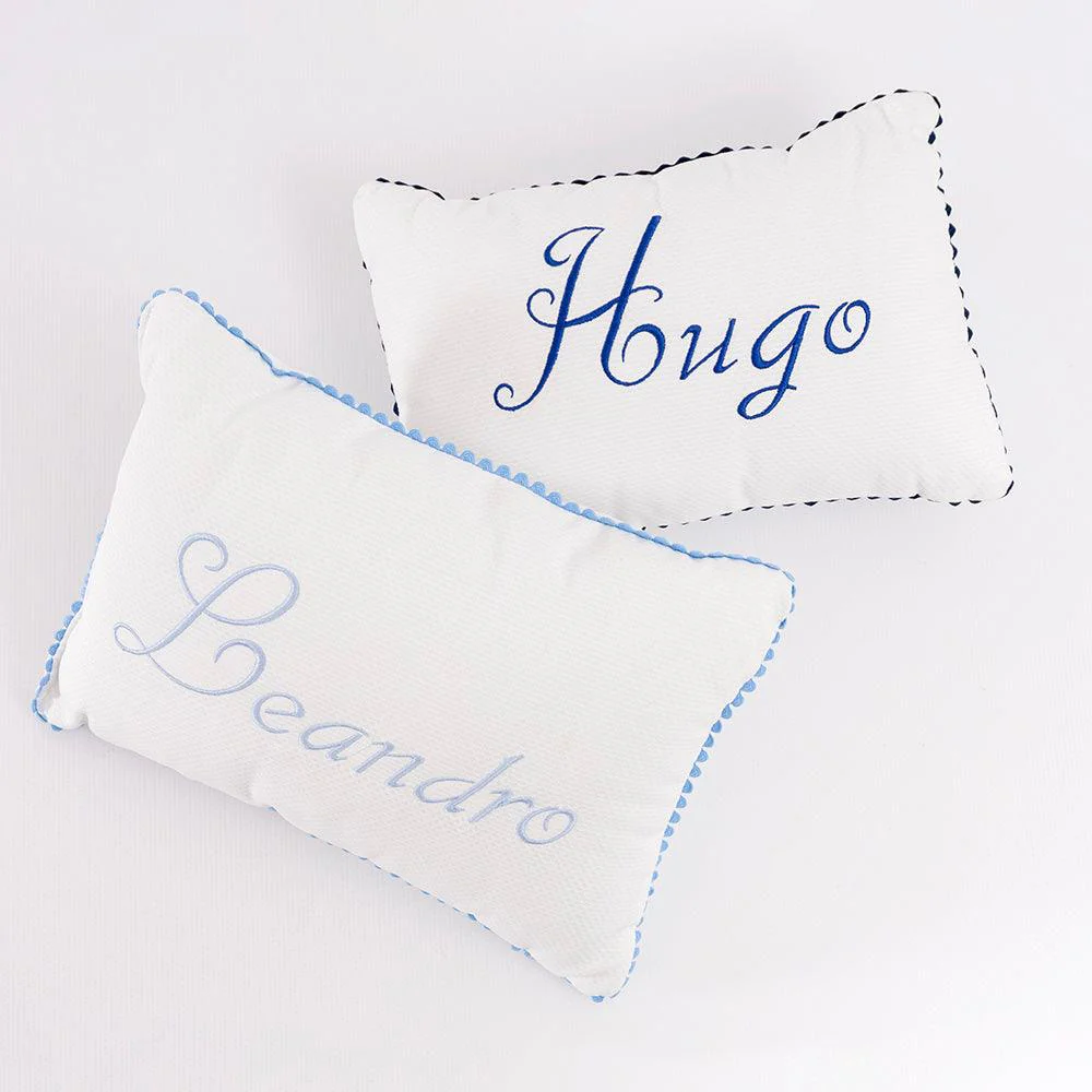 Cojín de piqué bordado personalizado con el nombre.