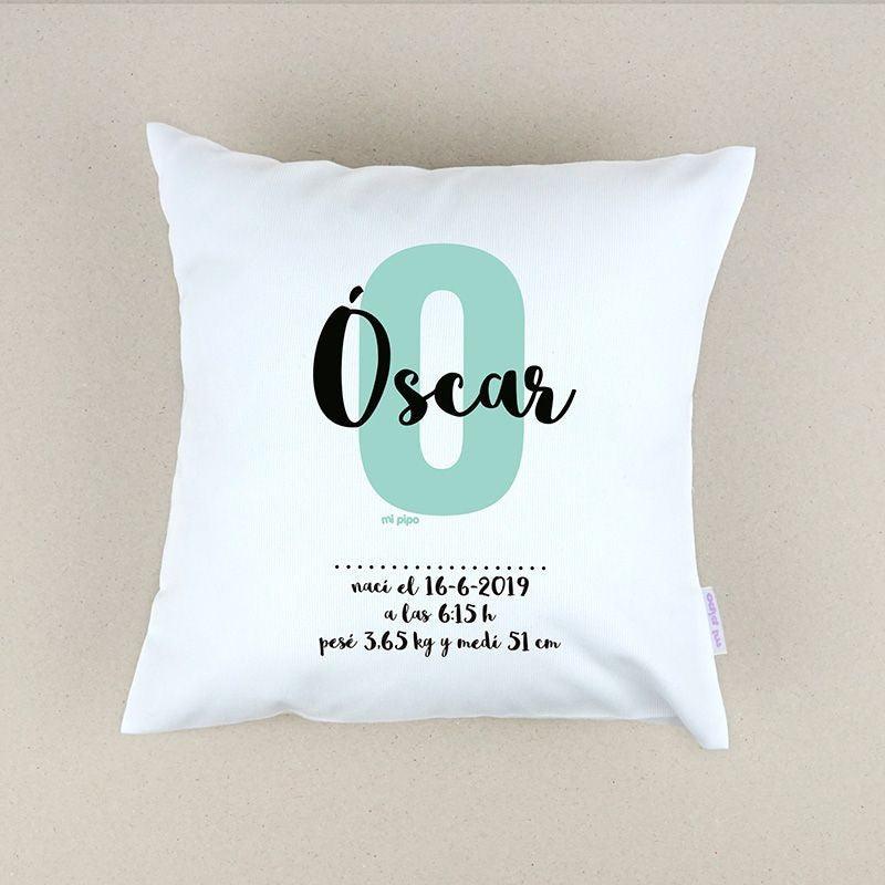 Cojín Personalizado Datos Nacimiento Bebé Mi Pipo Inicial Menta