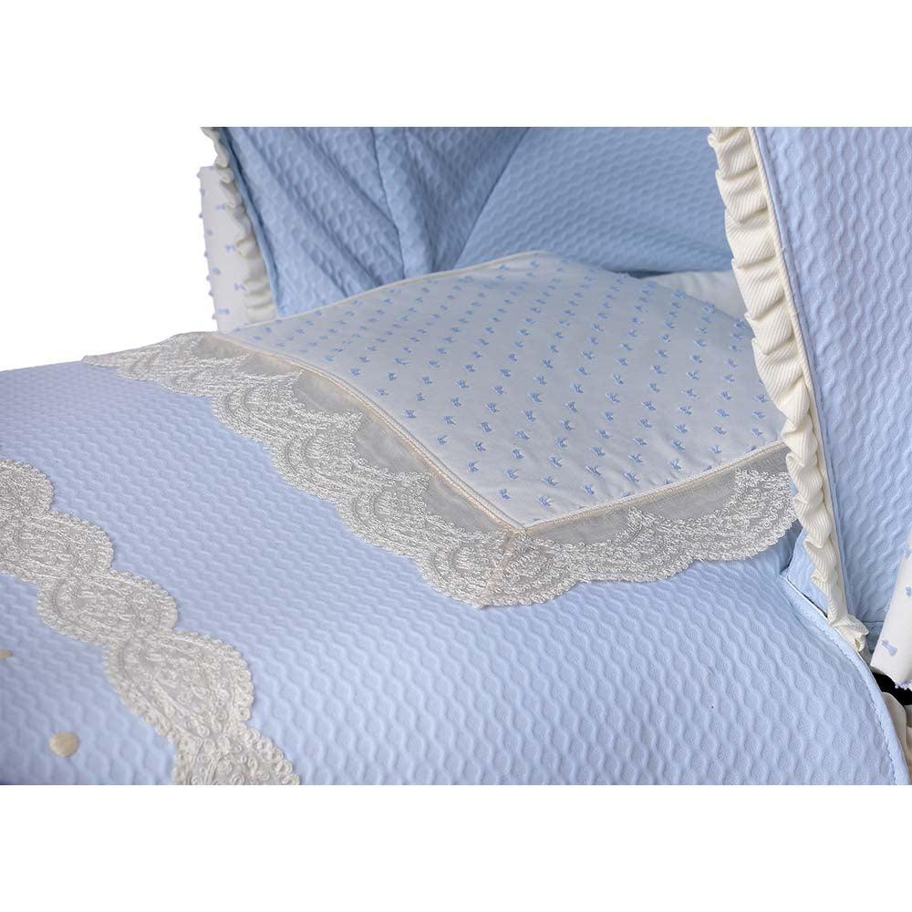 Colcha Capazo Carro Bebé Celeste Puntillas Bordadas Bebiti By Nanetes