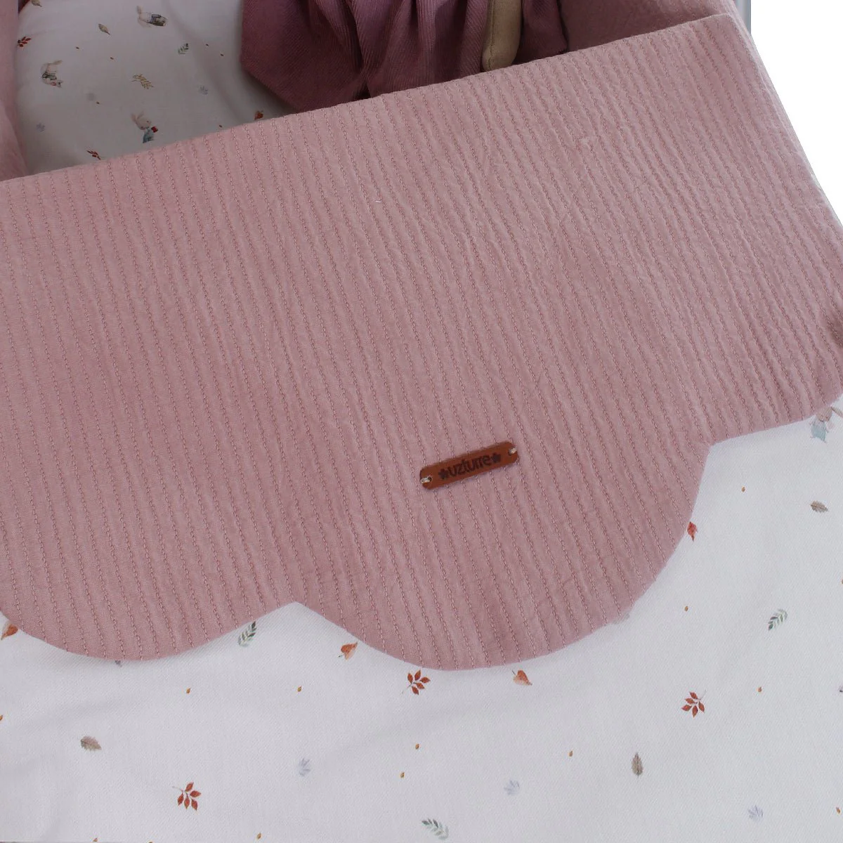 Esta colcha para capazo de medida universal que puedes usar en cualquier carrito de bebé ajustándola a tu gusto, confeccionada bajo pedido en el color que tú elijas.