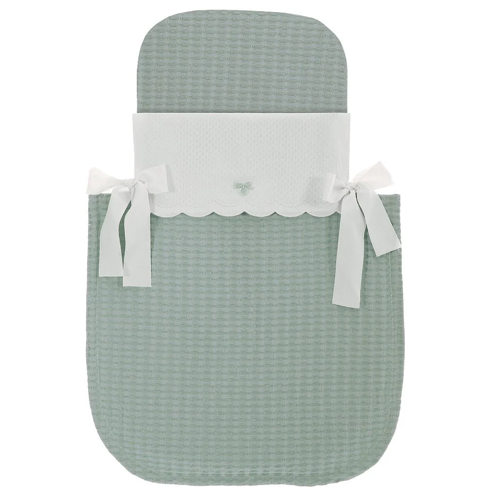 Esta colcha para capazo de medida universal que puedes usar en cualquier carrito de bebé ajustándola a tu gusto, confeccionada bajo pedido en el color que tú elijas.