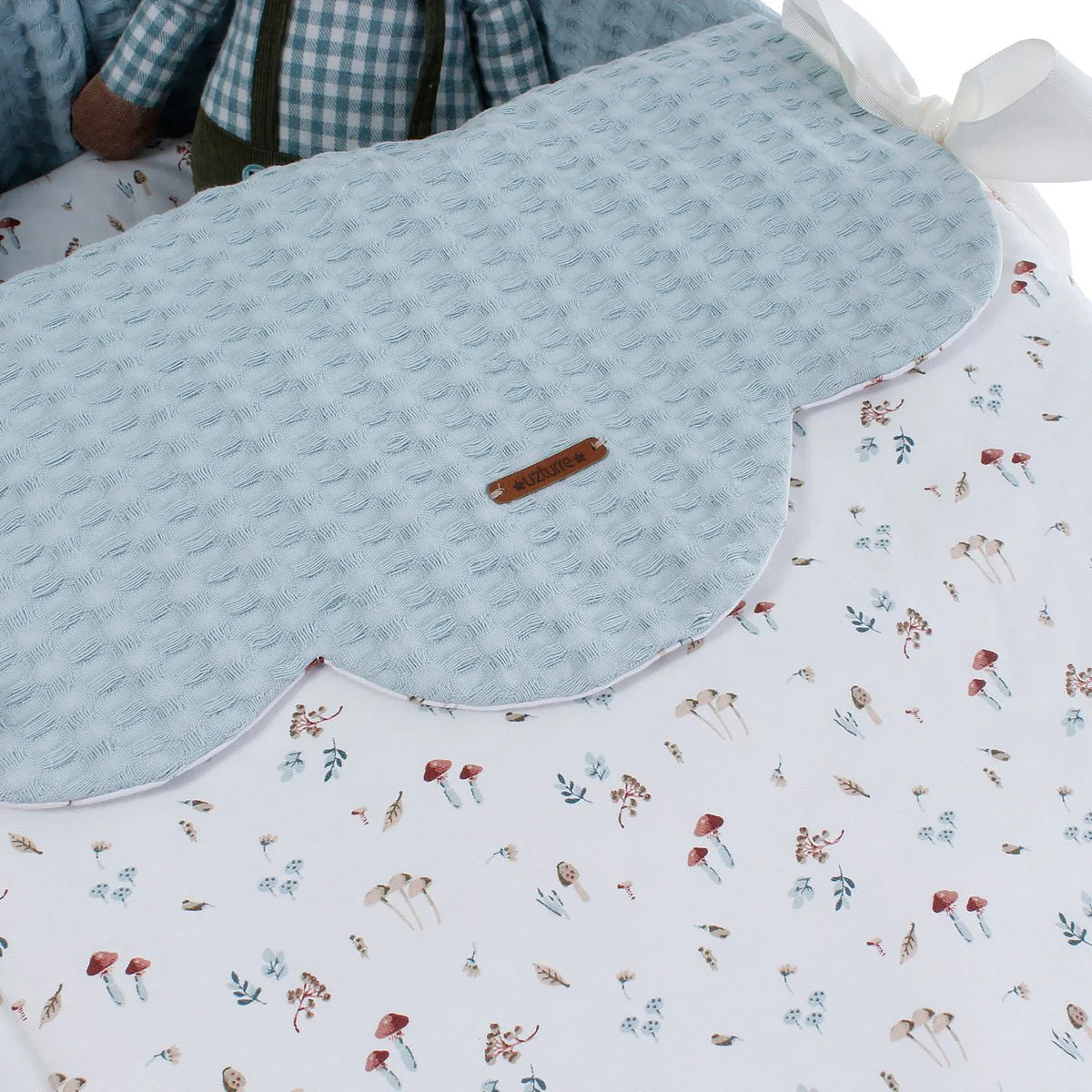 Esta colcha para capazo de medida universal que puedes usar en cualquier carrito de bebé ajustándola a tu gusto, confeccionada bajo pedido en el color que tú elijas.