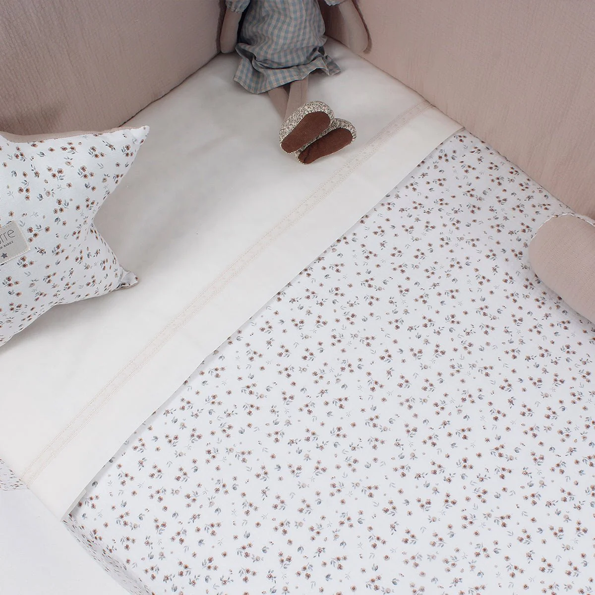Los faldones del edredón no llevan relleno y se pueden remeter debajo del colchón de cuna.