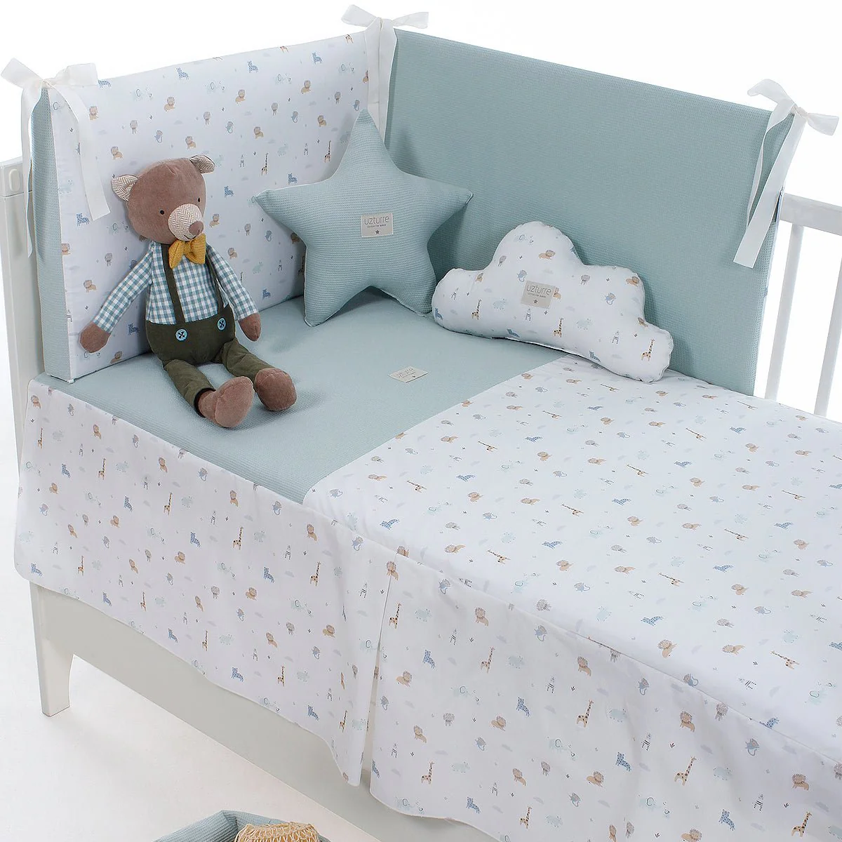 ¡Protege y decora la cuna de tu bebé con la Colcha+ Protector Safari Uzturre! Hecho en España, este conjunto clásico y atemporal es una opción dulce y segura para tu pequeño. ¡Añade un toque de encanto y calidad a la habitación de tu bebé con Uzturre!