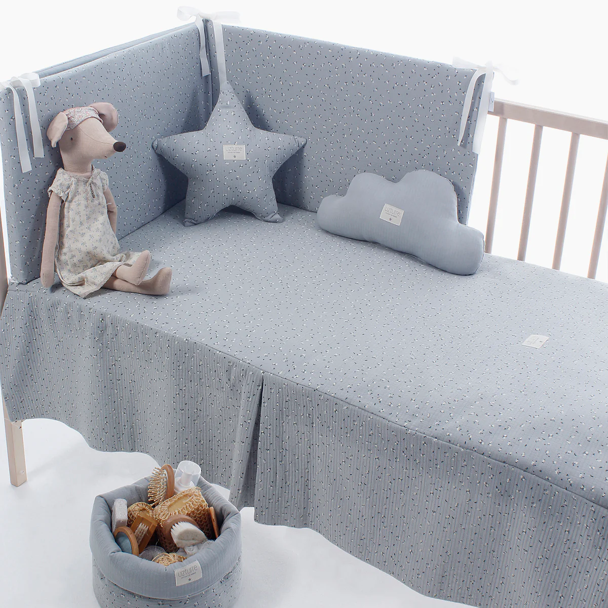 ¡Protege y decora la cuna de tu bebé con la Colcha+ Protector Tilda Uzturre! Hecho en España, este conjunto clásico y atemporal es una opción dulce y segura para tu pequeño. ¡Añade un toque de encanto y calidad a la habitación de tu bebé con Uzturre!