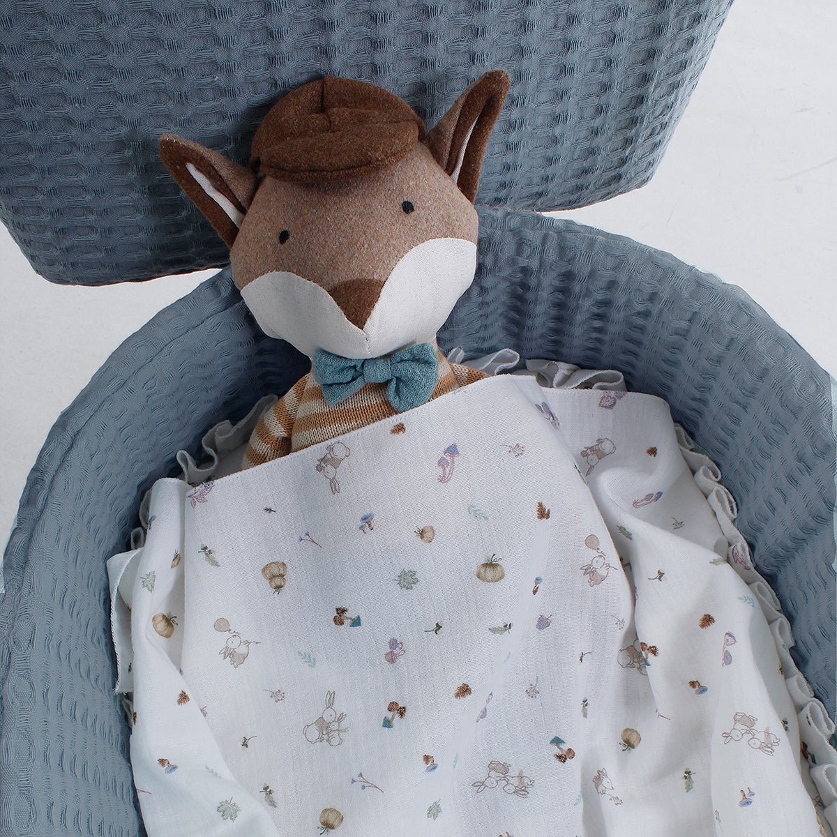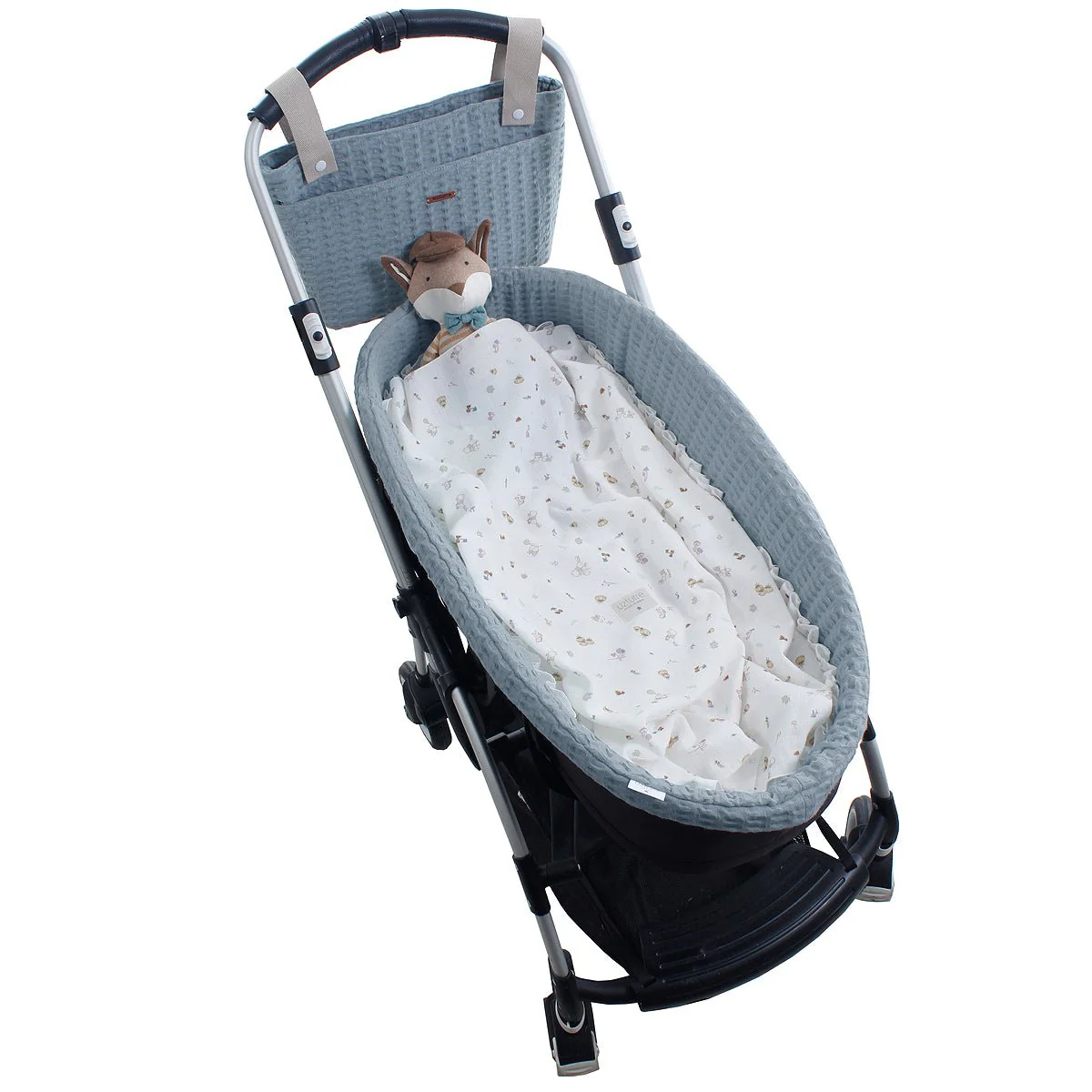 Colchoneta para usar tipo colchoncito en el fondo del capazo y muselina estampada para tapar al bebé en los días de más calor y protegerlo de los insectos, el aire acondicionado o el sol.