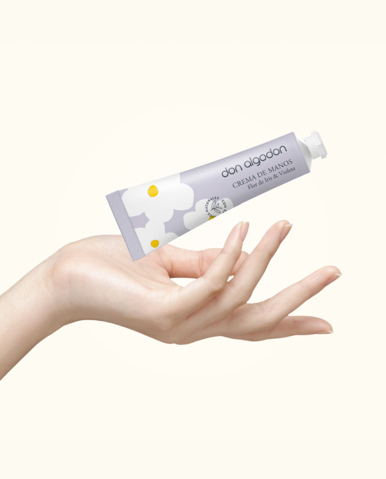 Crema de manos Flor de Iris & Violeta Don Algodón de textura ligera y fácil absorción sin dejar sensación grasa.