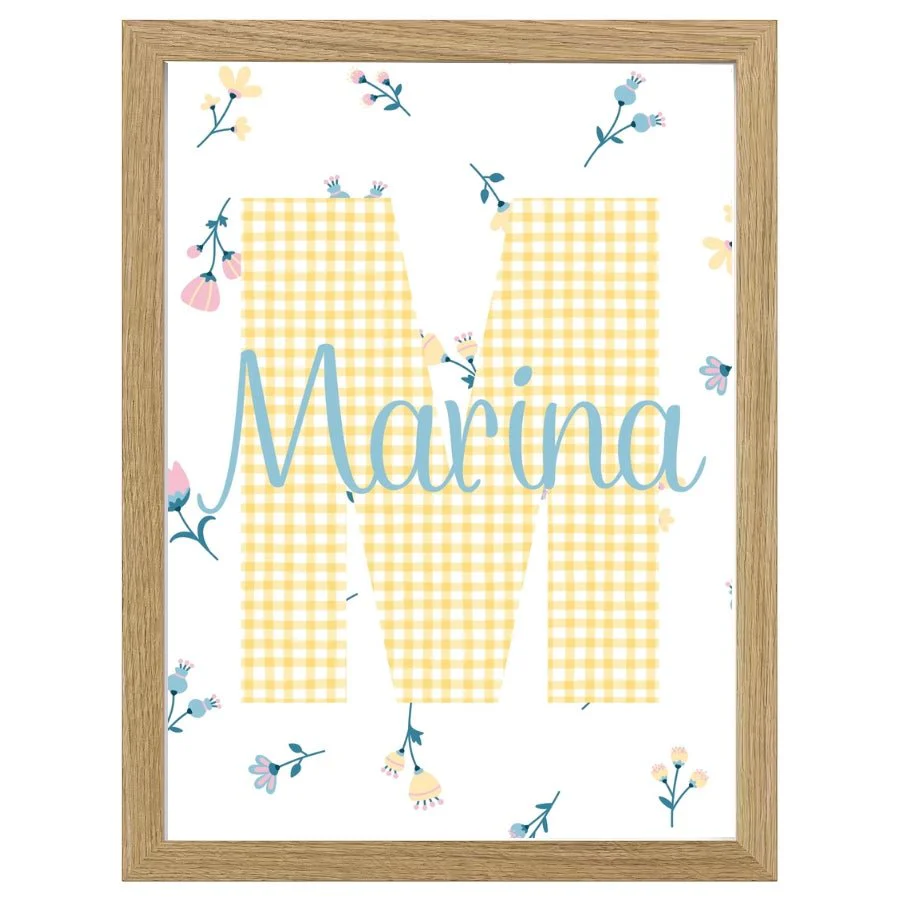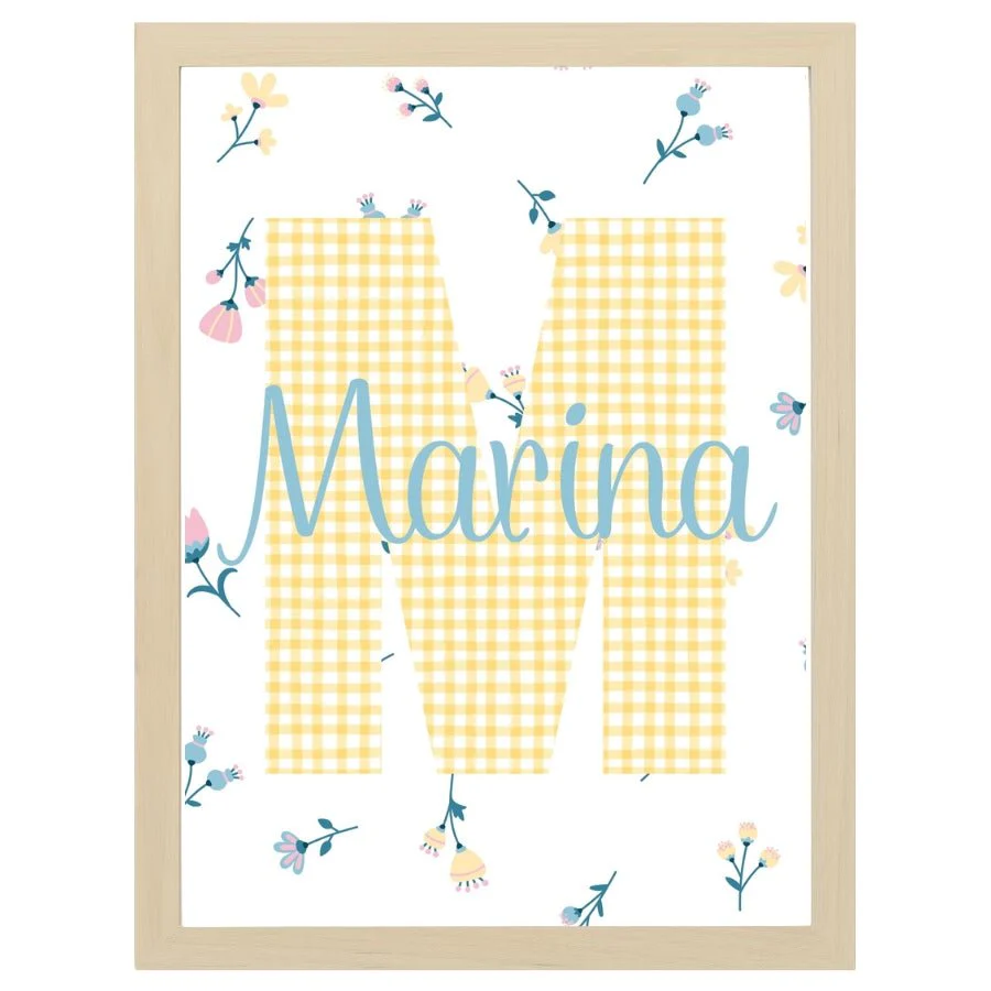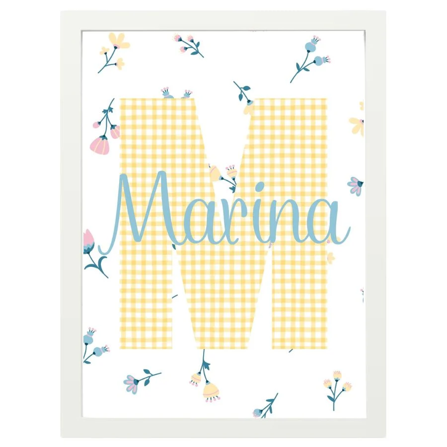 Cuadro Infantil nombre florecitas amarillo