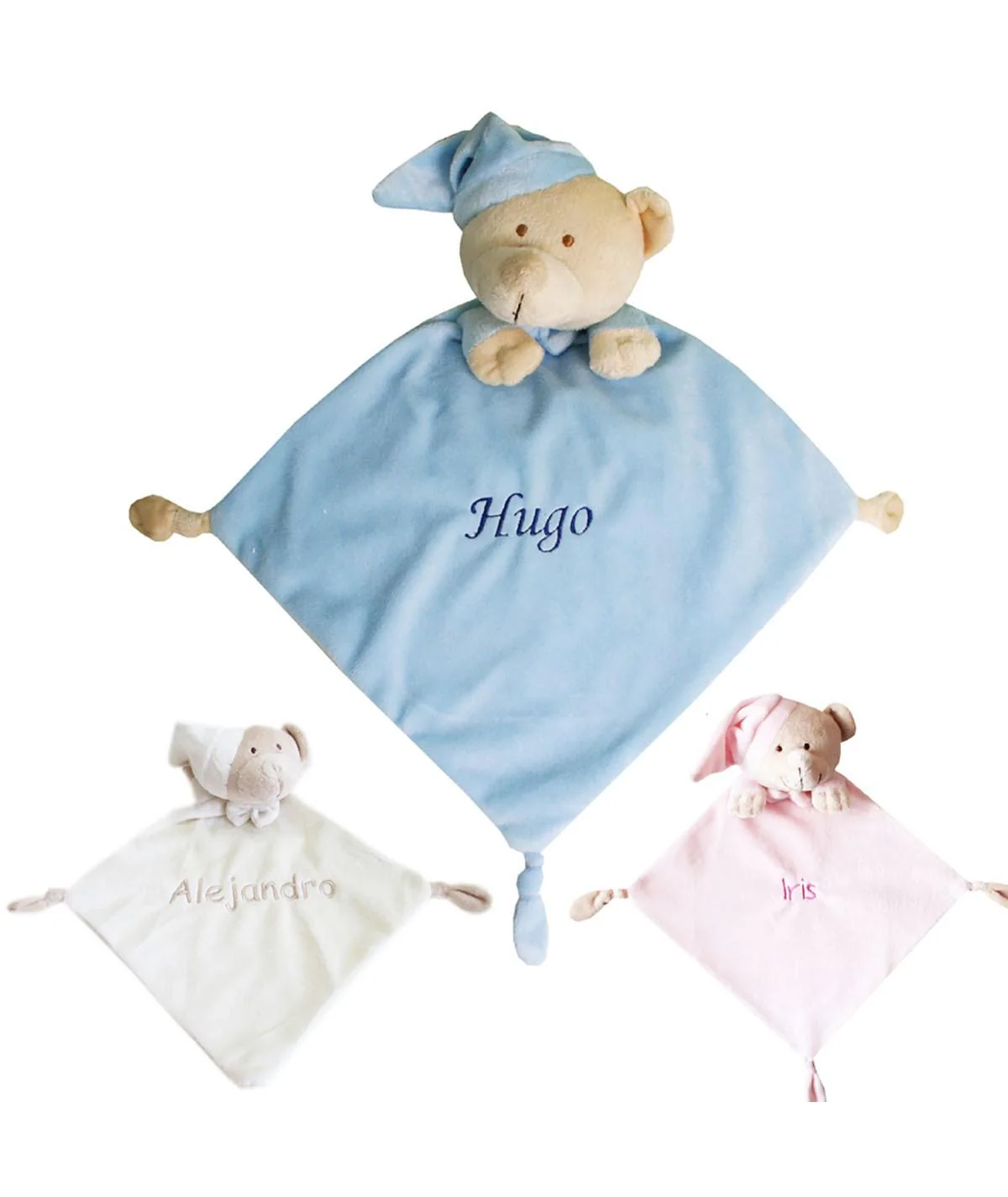 Un muñeco imprescindible para el bebé desde el nacimiento. Su mejor amigo de compañía, de sueño y de juego. El que lleva el olor de su mamá y además con su nombre bordado.