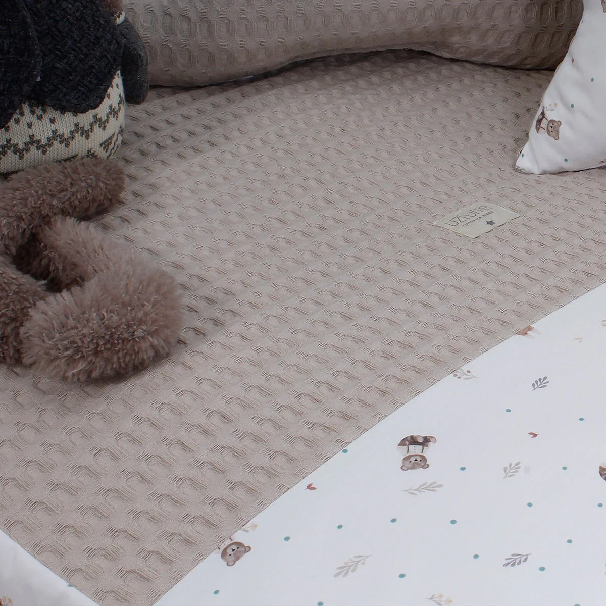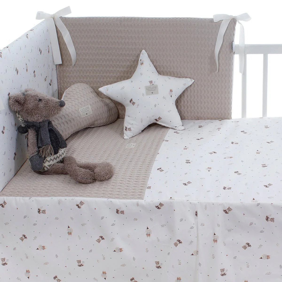 ¡Protege y decora la cuna de tu bebé con la Colcha+ Protector Gaspar Uzturre! Hecho en España, este conjunto clásico y atemporal es una opción dulce y segura para tu pequeño. ¡Añade un toque de encanto y calidad a la habitación de tu bebé con Uzturre!