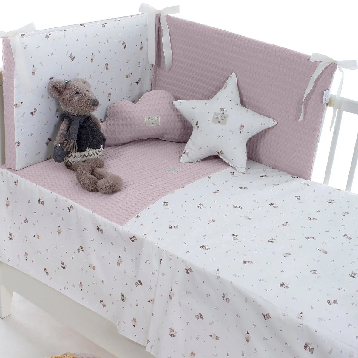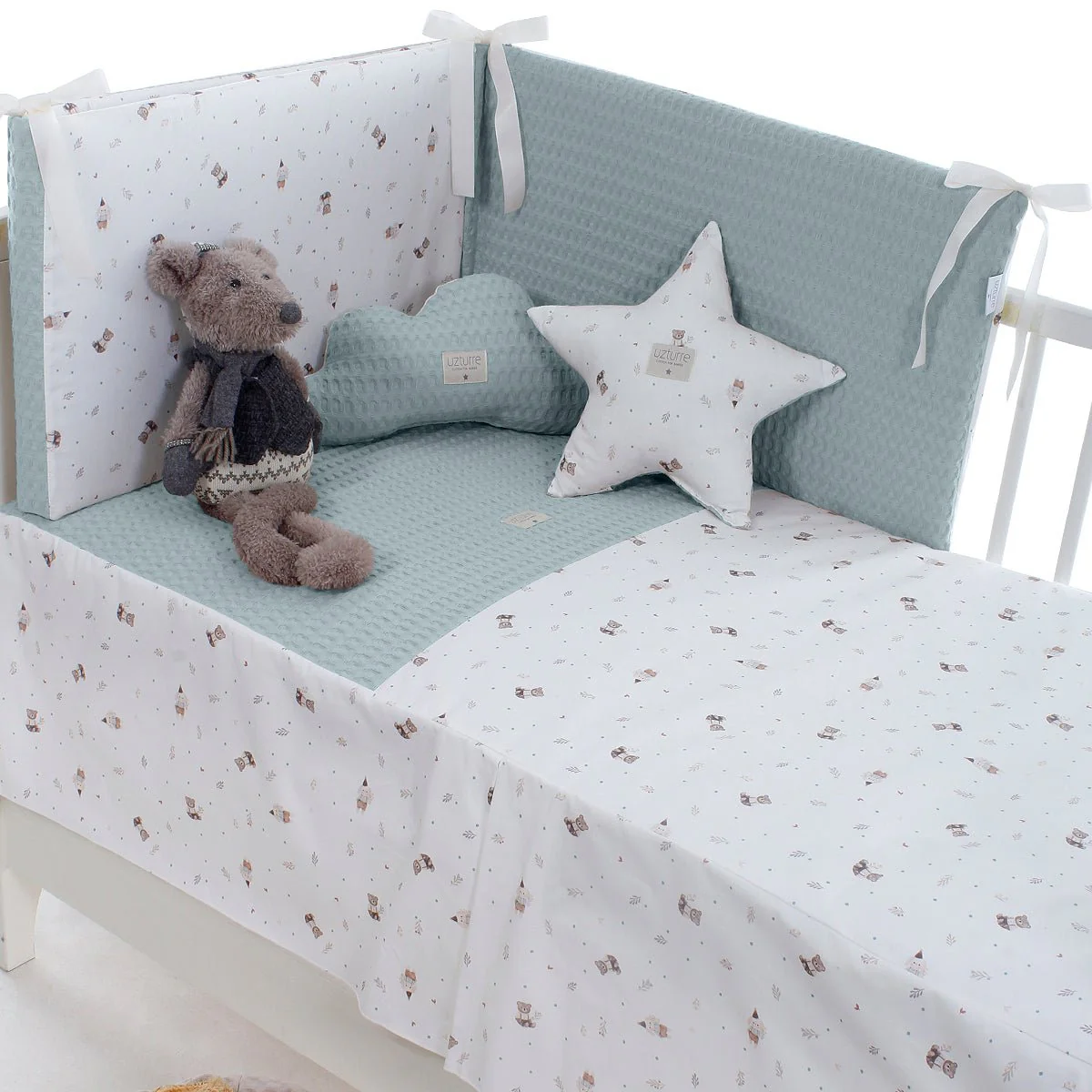 Pack de colcha + Chichonera protector para cunas. Los cojines y peluche no van incluidos en el precio. Se venden aparte.