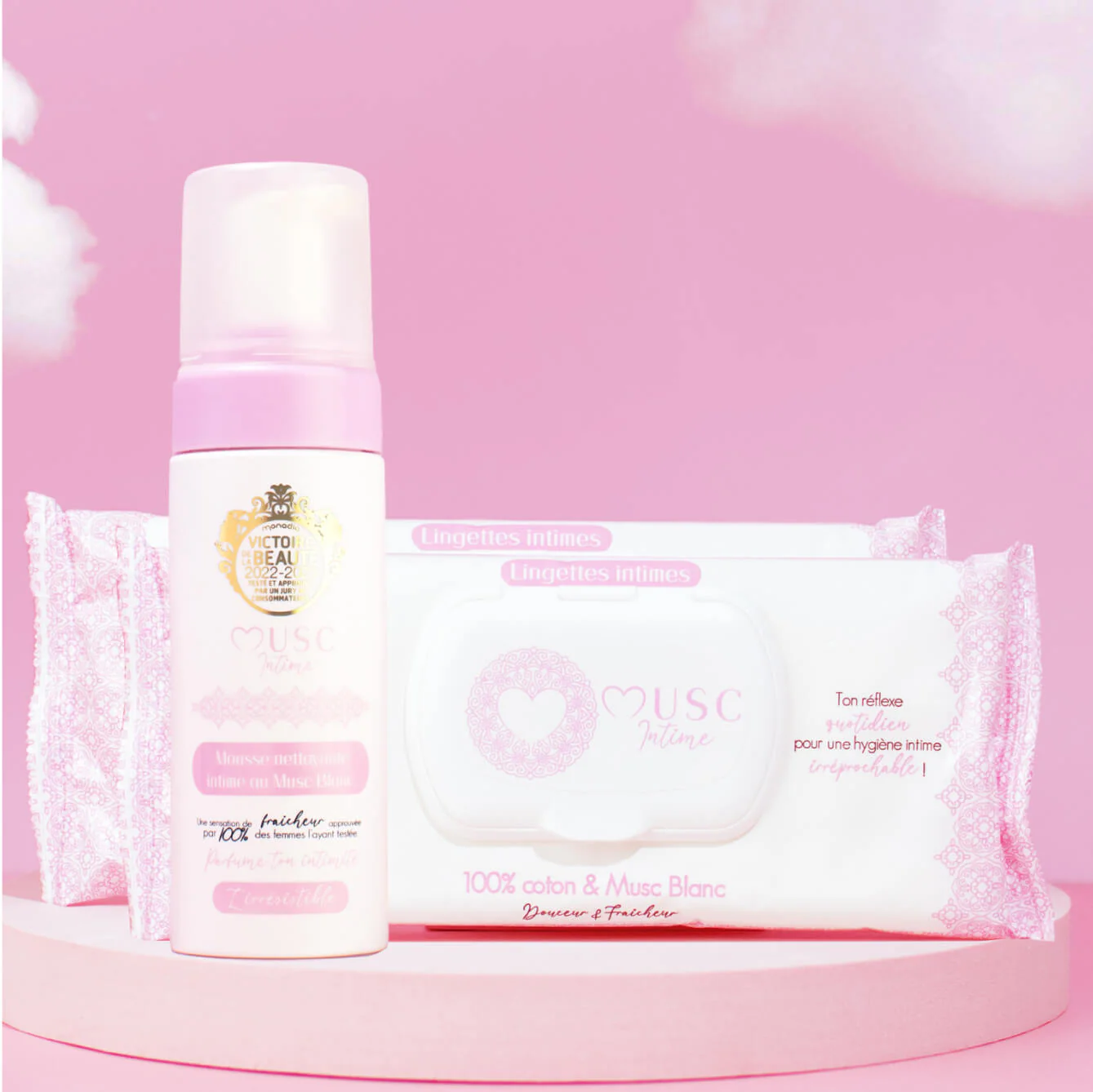 Espuma íntima + 2x toallitas – Almizcle blanco