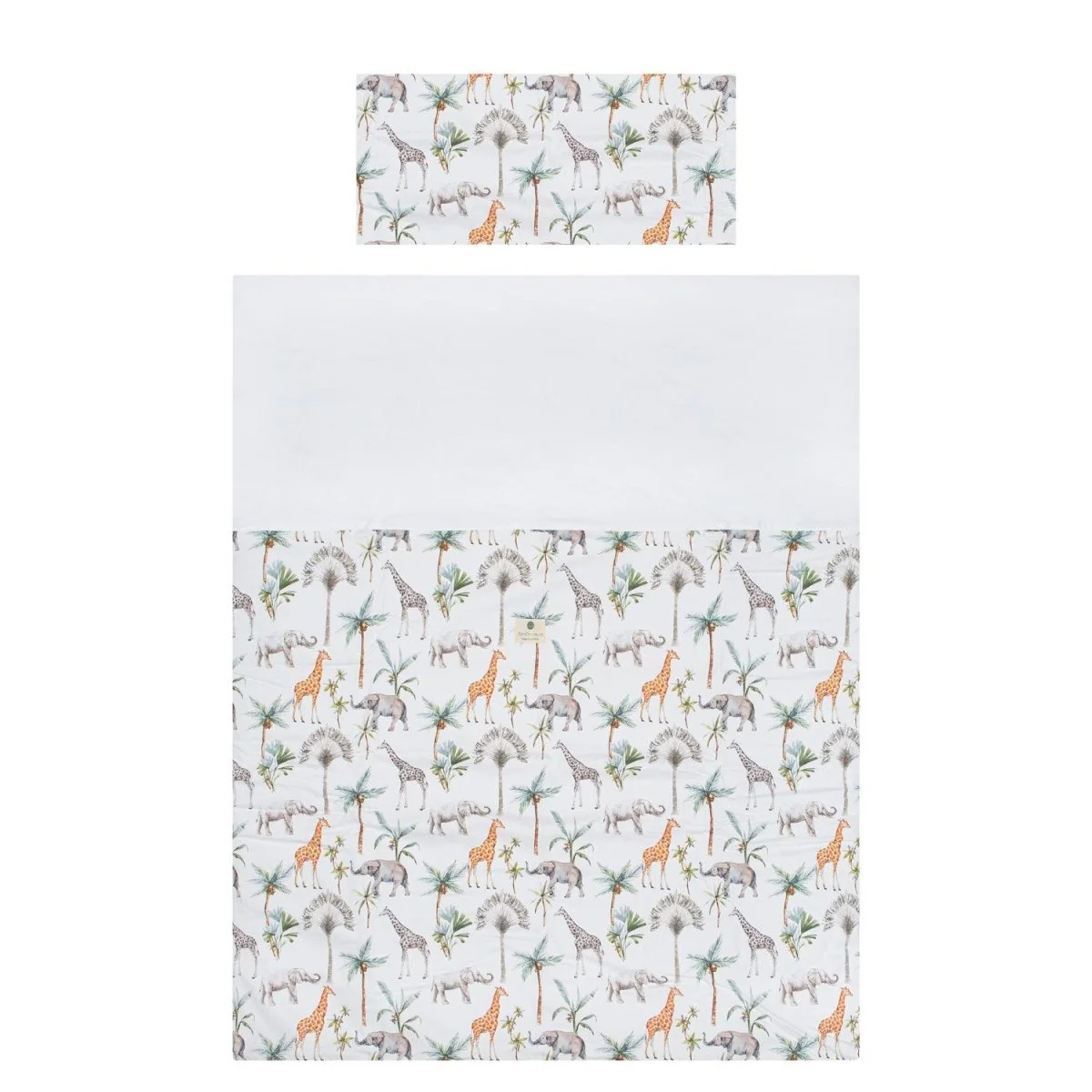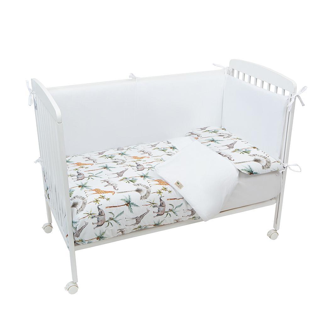 Funda nórdica de cuna que se puede utilizar durante todo el año. Y el protector evita que el bebé se pueda dar un golpe en los barrotes o colar las piernas en los huecos.