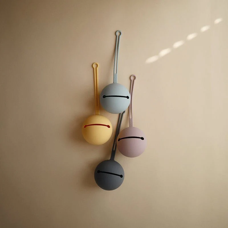 Mantén el chupete limpio y seguro con este portachupetes de Mushie.