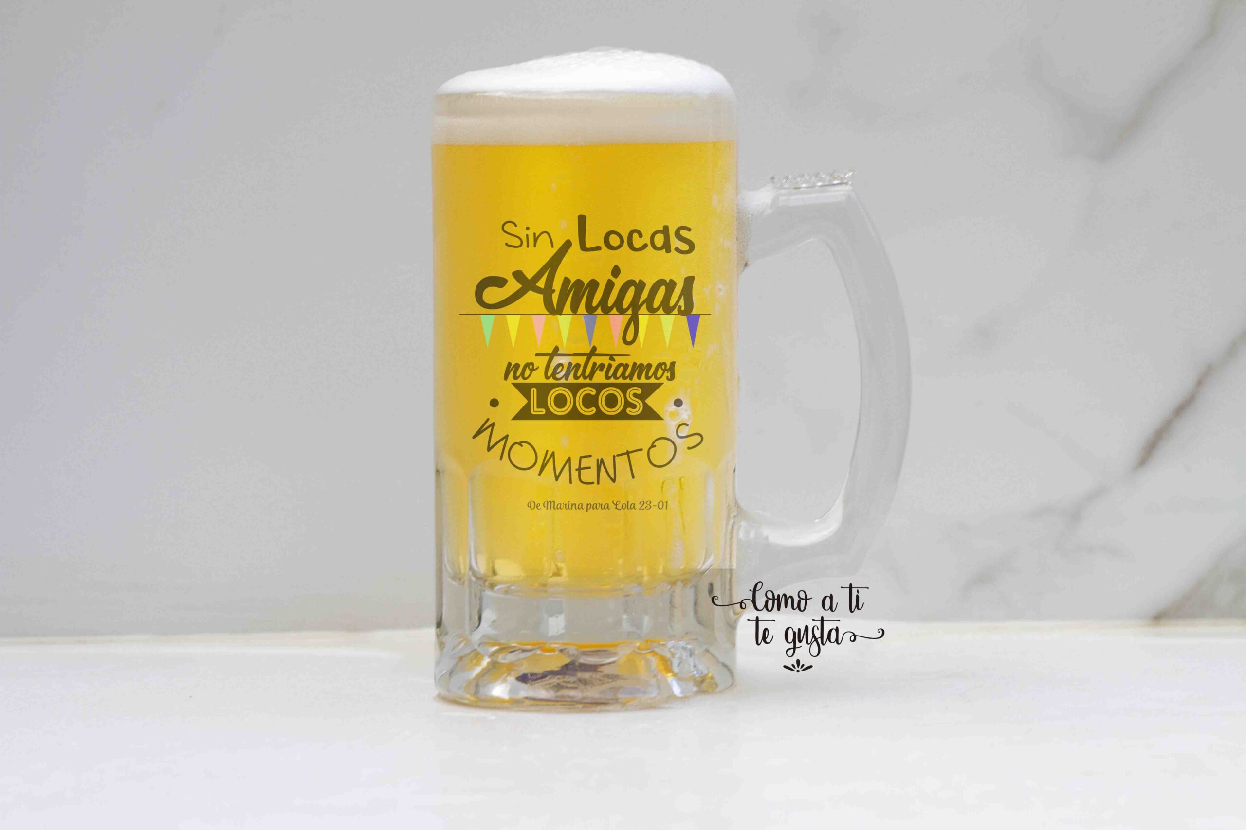 El regalo perfecto para la Tus Locos Amigas . Esta jarra de Cerveza esmerilada mantiene la bebida mas tiempo fria, asi podra tomar su bebida favorita de la mejor forma.