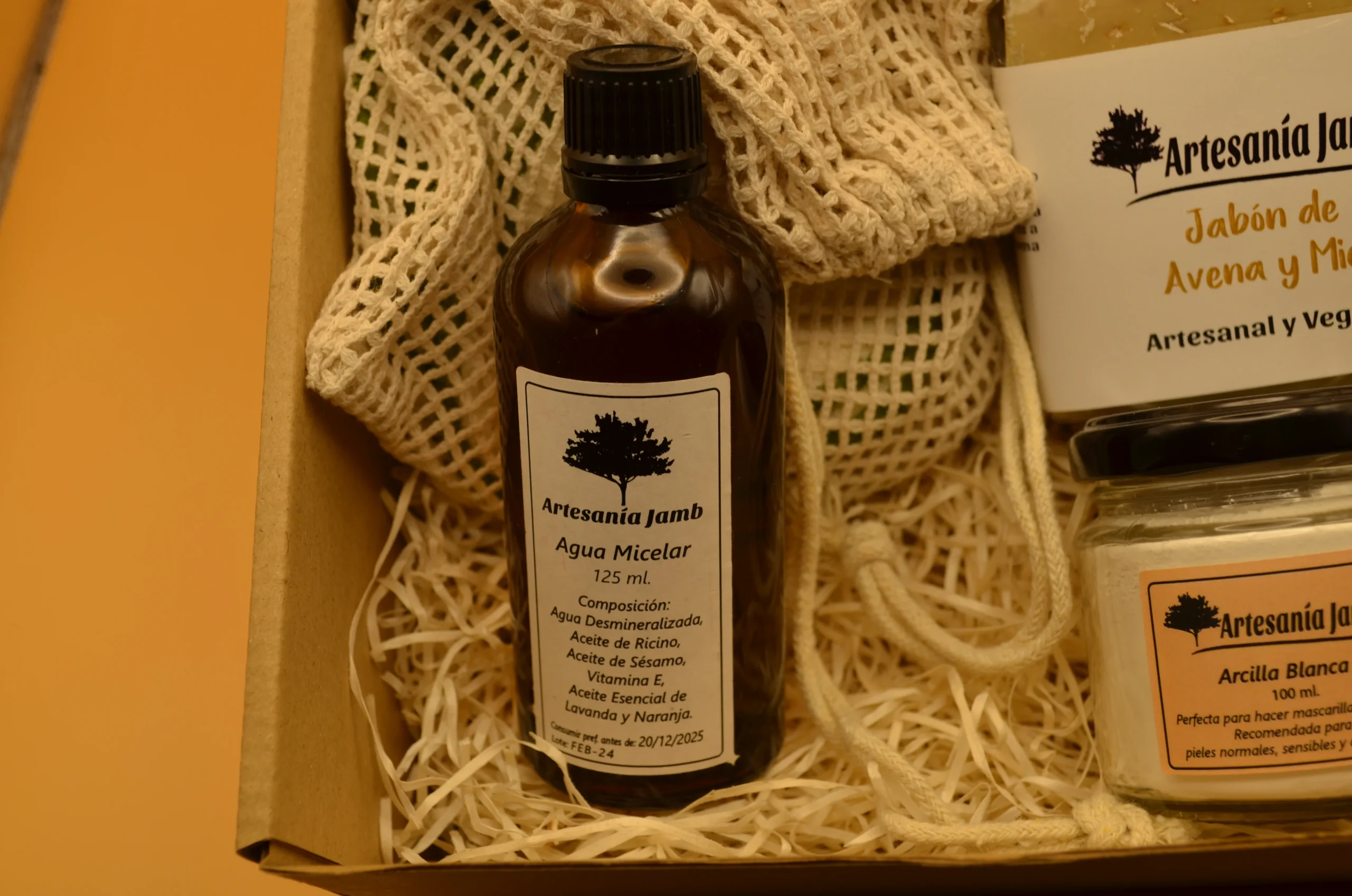 Esta Caja Regalo Limpieza Total es el Kit perfecto para regalar a tu mejor amiga y dar comienzo a un Skin Care Routine de limpieza con productos 100% naturales. El Agua Micelar con Agua Mineral, Aceite de Sésamo, Ricino y una combinación fresquita de Lavanda y Naranja que ayudará a eliminar el maquillaje o la suciedad acumulada en nuestros poros. Por eso, hemos incluido también en esta caja 10 Discos Desmaquillantes Reutilizables y Ecológicos. Están fabricados en paño de algodón y permiten una limpieza suave sin dañar el tejido y vienen en una Bolsa Especial para lavadora. Pero si a veces tu piel está un poco más grasa de lo normal y necesitas una limpieza más profunda, puedes crear tu propia mascarilla facial mezclando 2 cucharadas pequeñas de Arcilla Blanca con 100 ml de Agua tibia. También puedes enriquecer tu mascarilla con Aceite Esencial de Albahaca o Árbol del té que tienen propiedades antisépticas. Por último, para limpieza mucho más sutil y para uso diario, hemos incluido el Jabón Natural de Avena y Miel. Este jabón tiene una base de Aceite de Oliva y Coco, que nos aportará una base nutritiva y humectante y está enriquecido con otro elemento emoliente como la Miel Pura de Abeja. Sin embargo, los copitos de Avena que lleva integrados nos generan una exfoliación suave que nos ayudará a eliminar la suciedad acumulada en los poros.