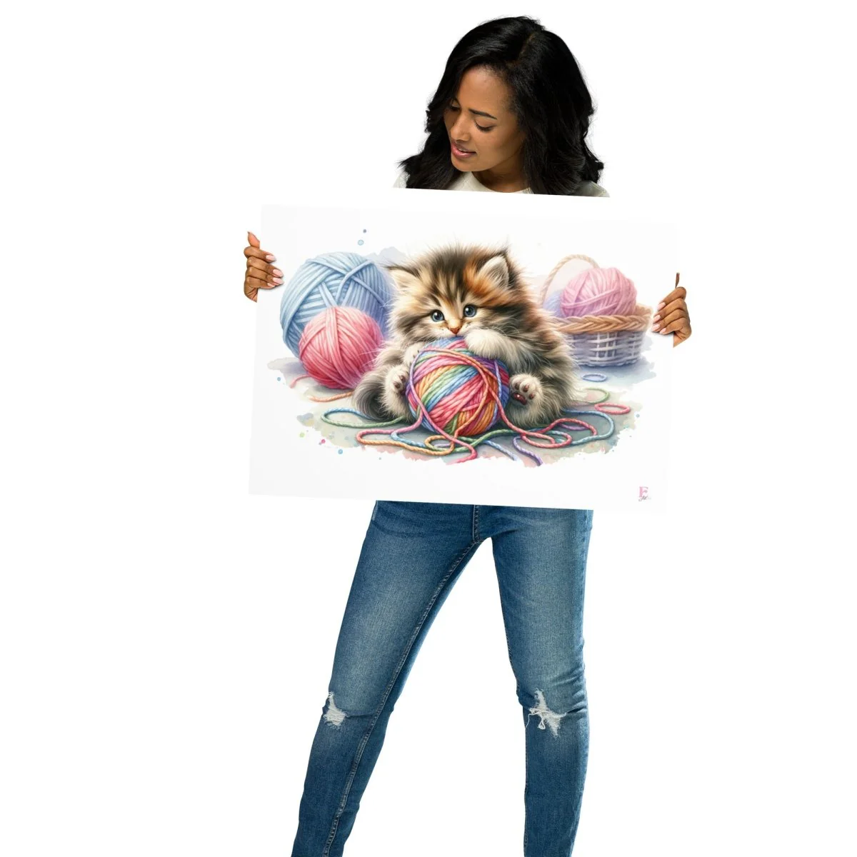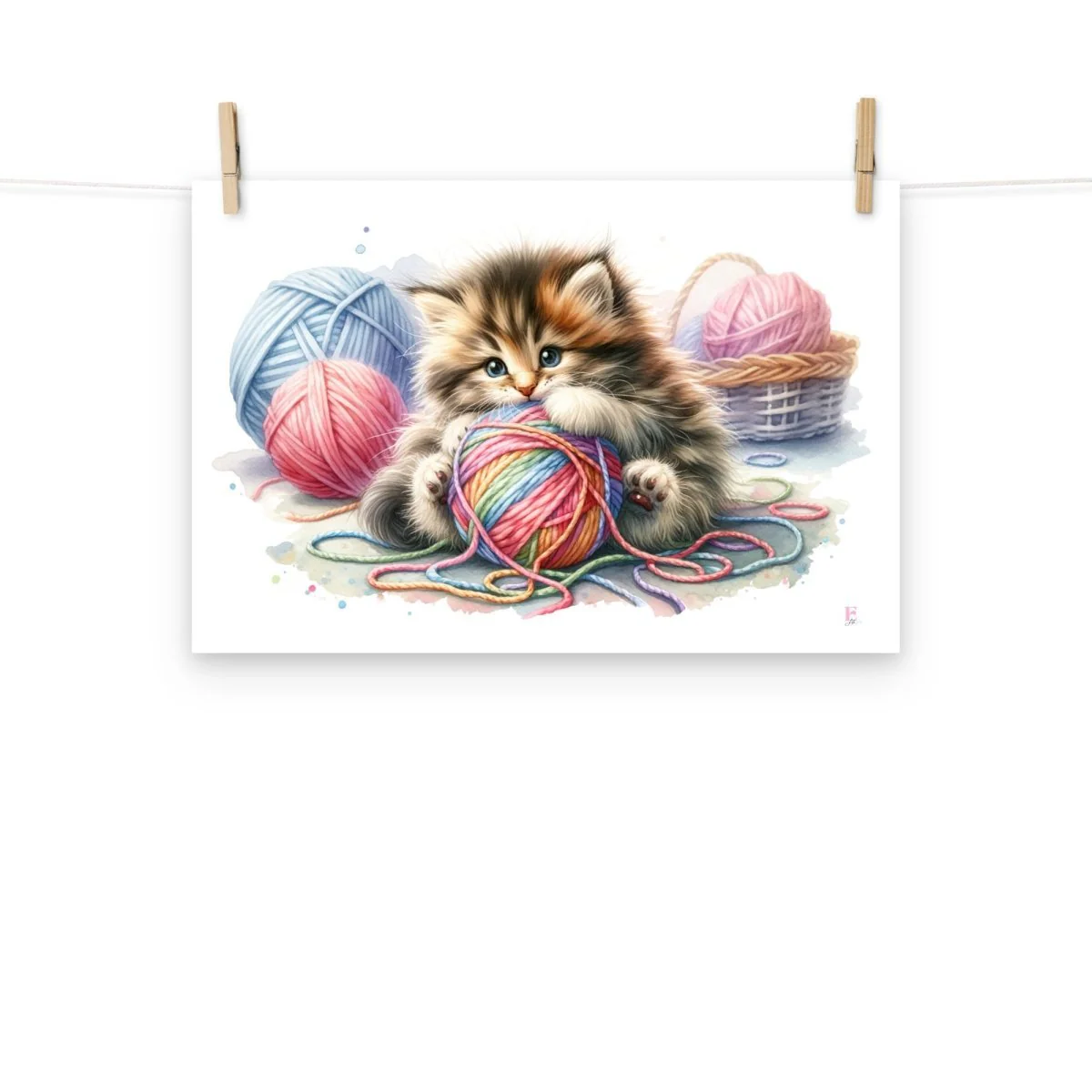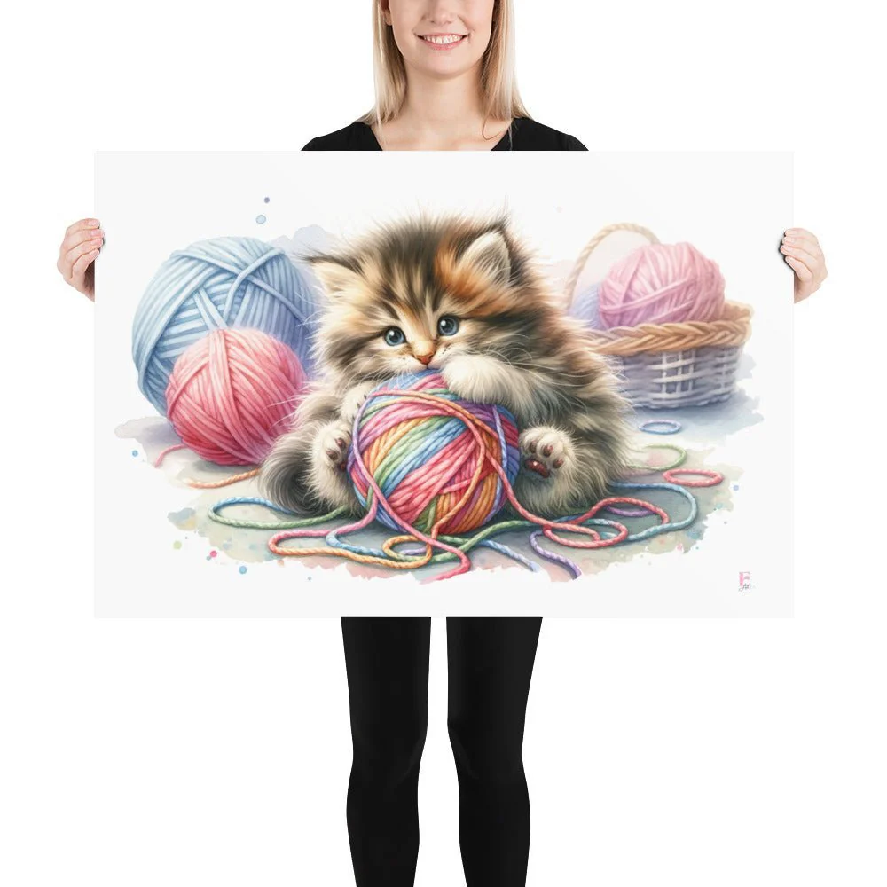Lámina infantil Gatito con Ovillo de lana